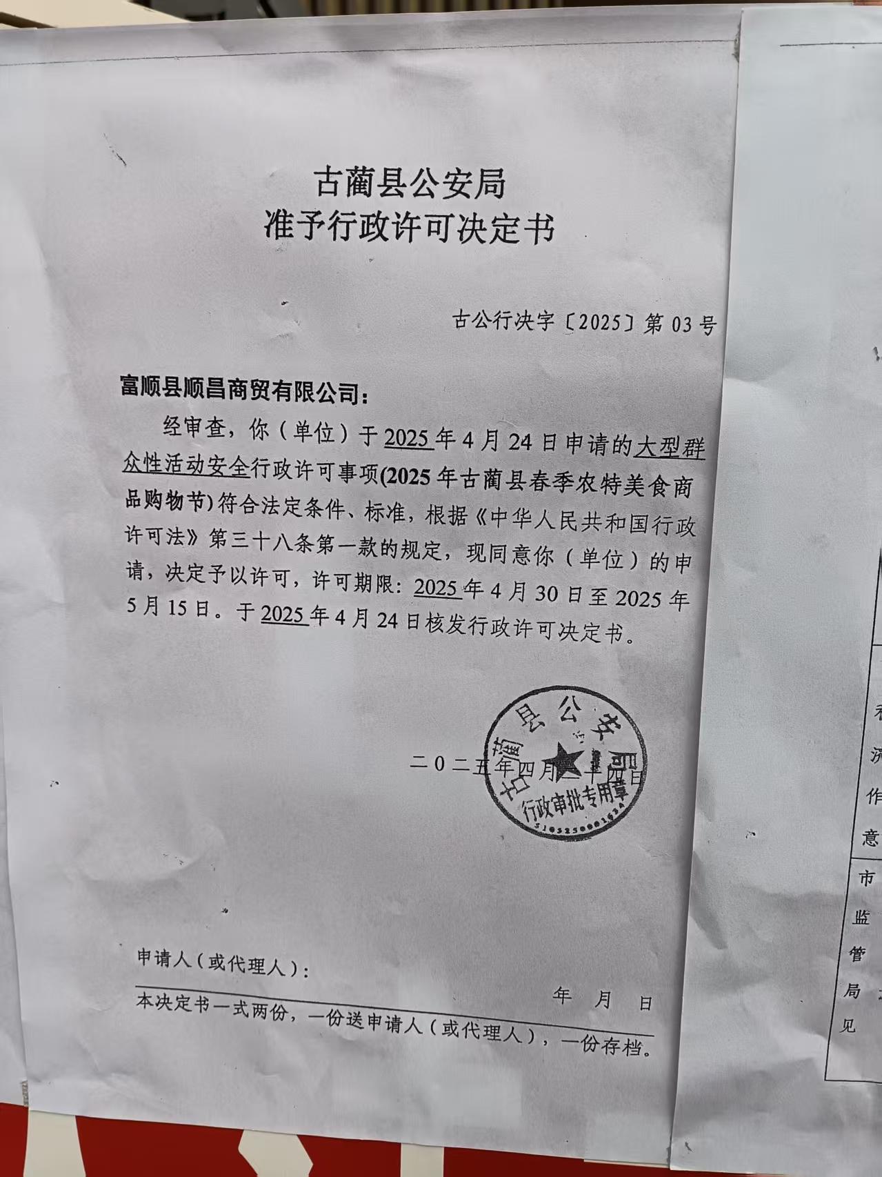 经核实:本次展销会名为古蔺县春季农特美食商品购物节。由举办展销会企业申请,经县商务和经济合作局、县应急局、县公安局、县交警大队、县消防救援大队、县市场监督管理局、县综合行政执法局及彰德街道办审查批准。