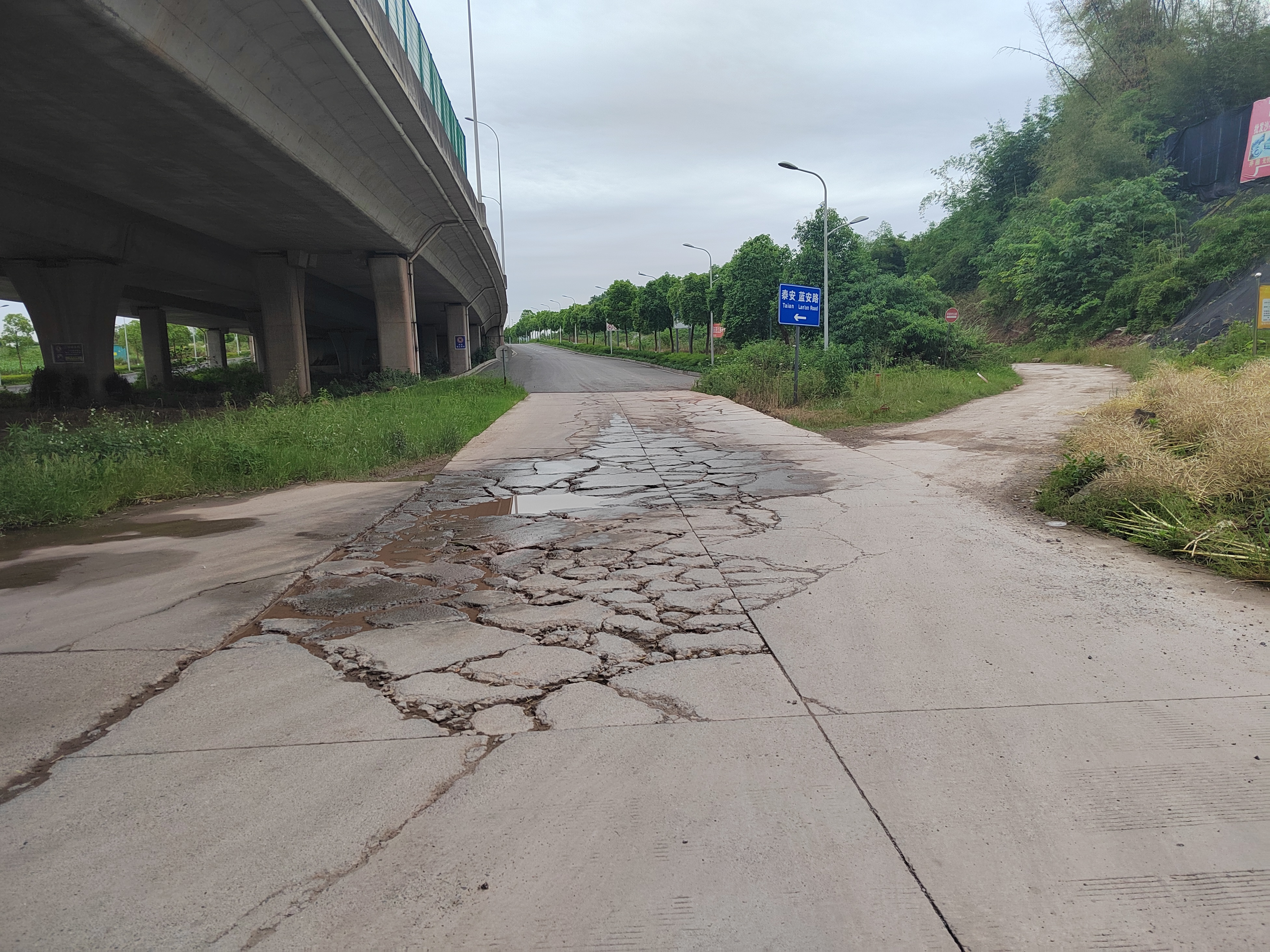 九川路与二环路连接线路面坑洼积水以及出入口狭窄问题