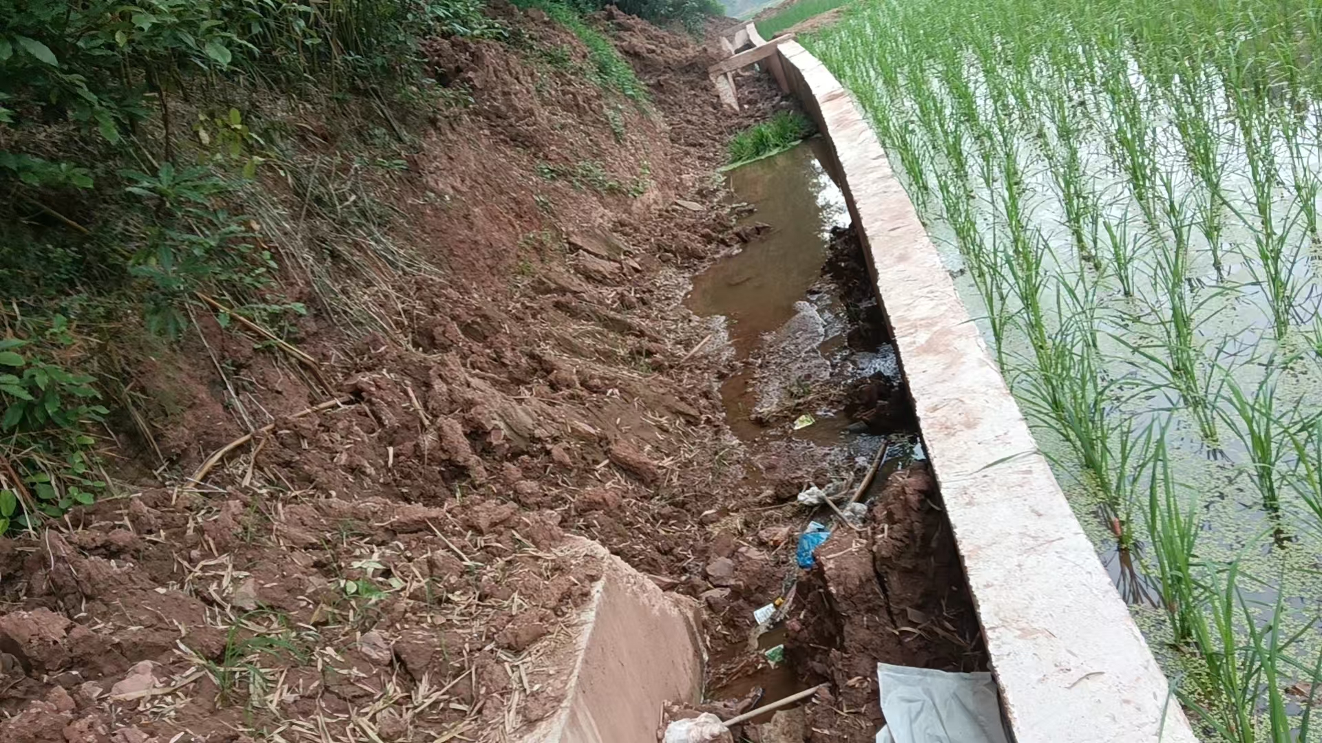 - 水渠改建后有一处已经发生垮塌 至今未整改 现在已进入汛期