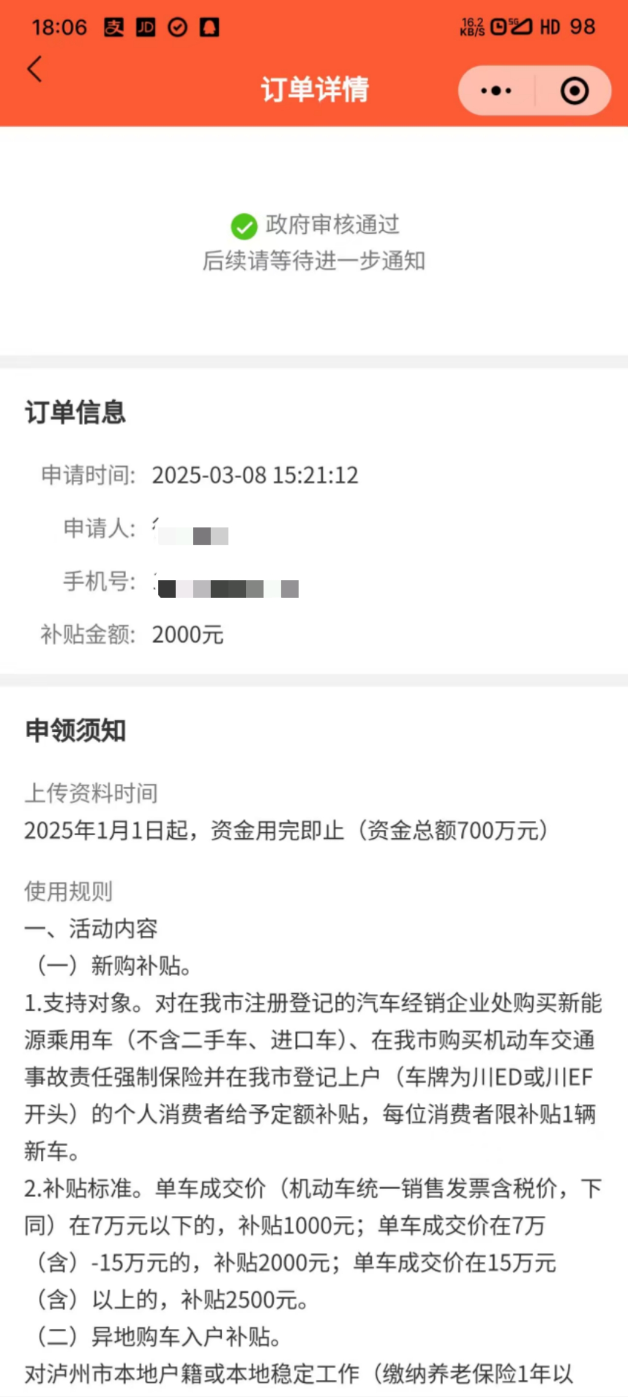 3月份提交的新能源汽车补贴什么时候能发放,在奇瑞风云新能源体验中心(泸州瑞辰汽车销售服务有限公司)买的车。