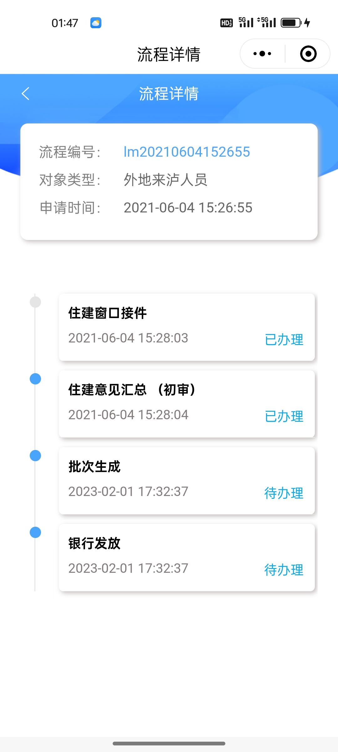 11:29:24 龙马潭区住房城乡建设局 已受理 -