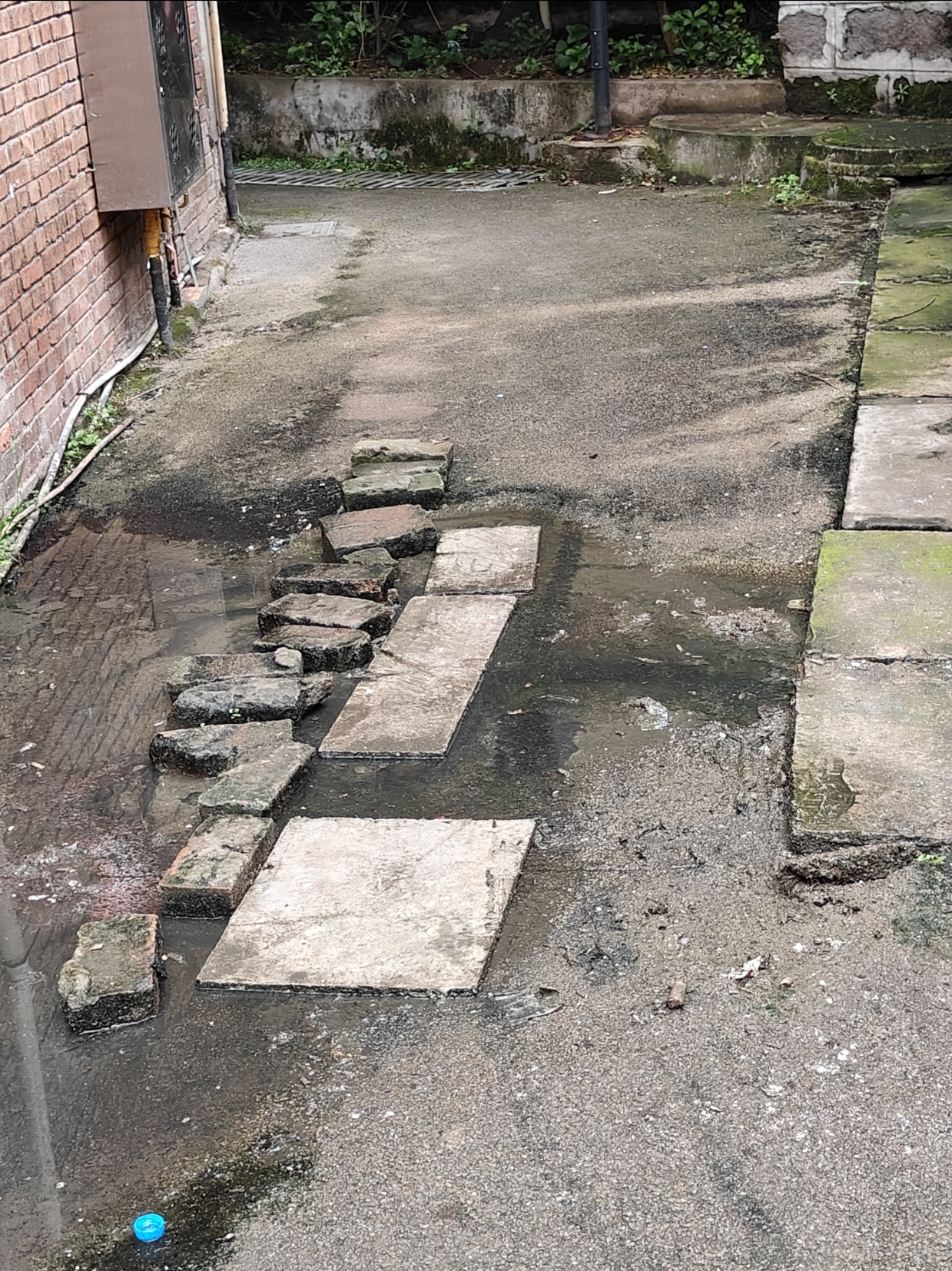 合江县荔乡路154号唯一出口处污水泄露导致百余号居民出行受阻