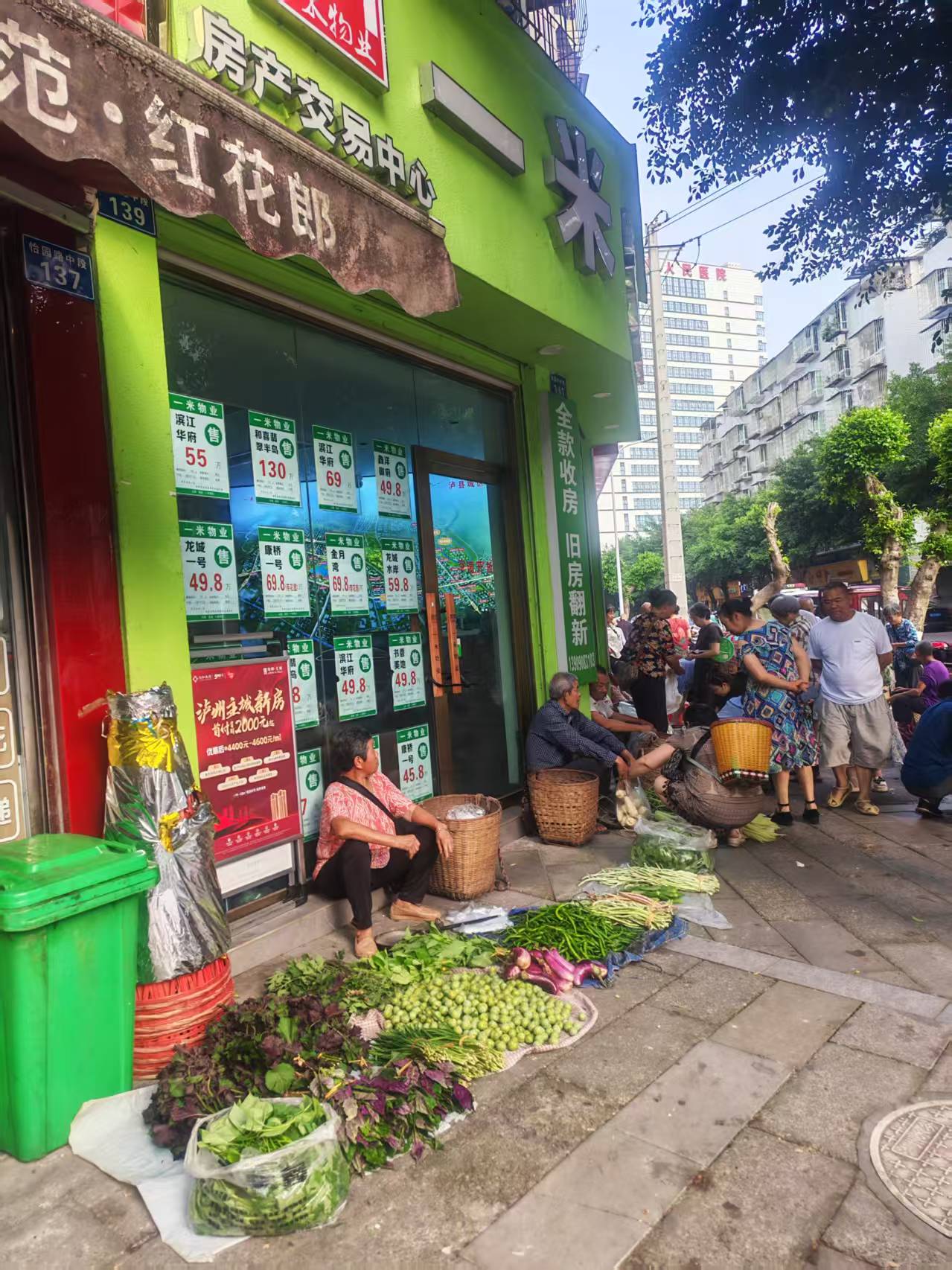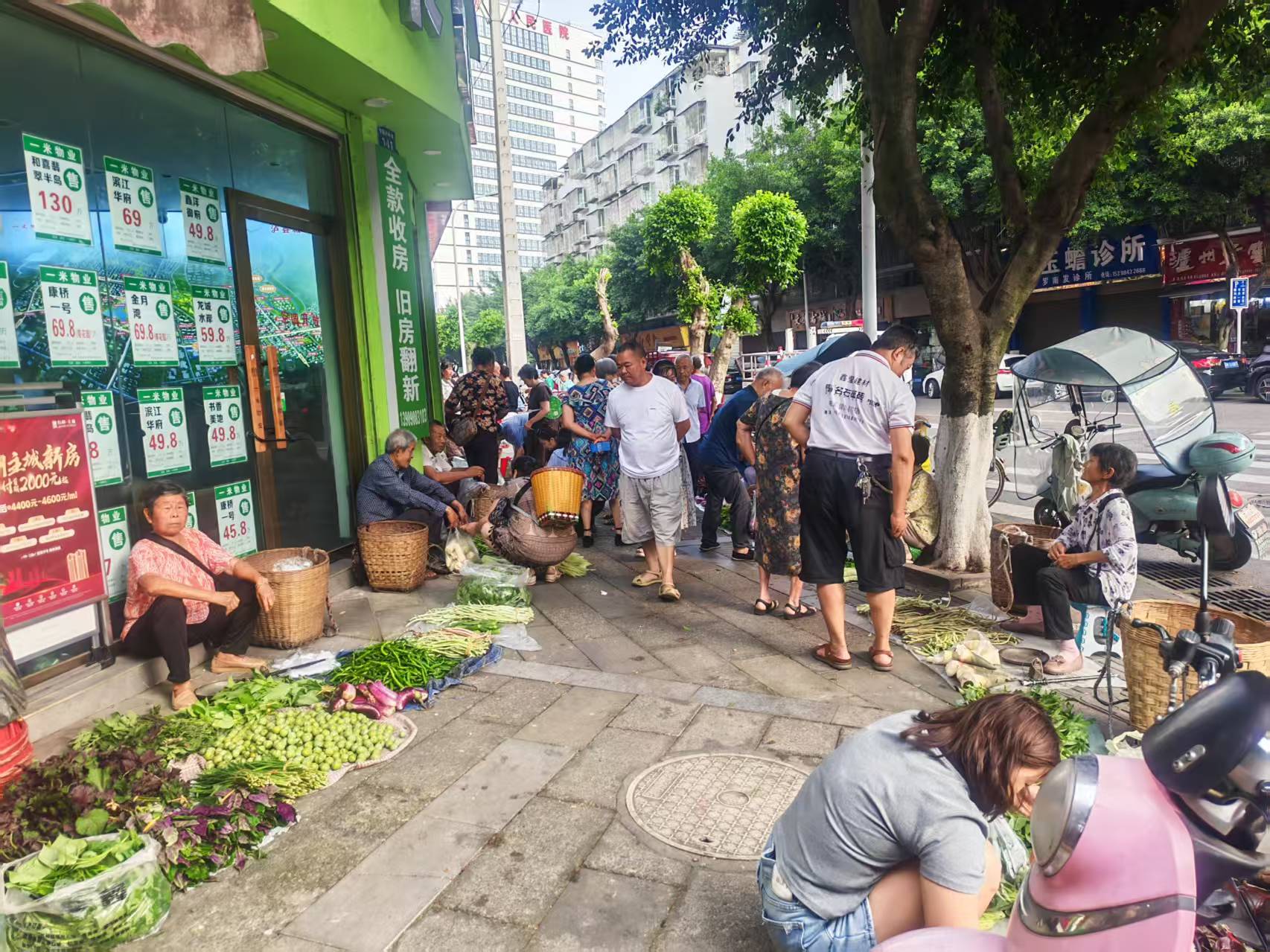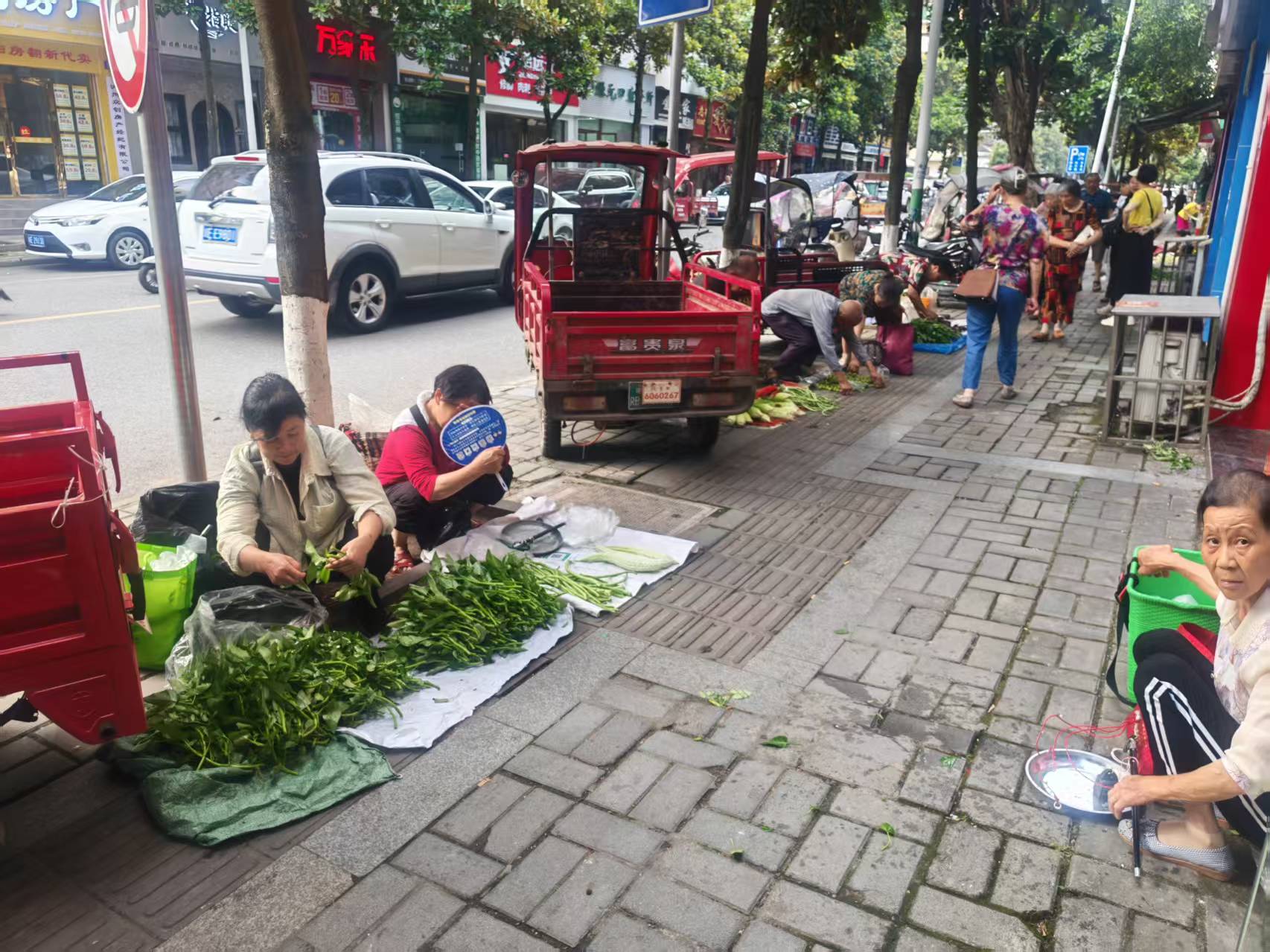 商户门口被卖菜的占道经营严重 希望处理一下