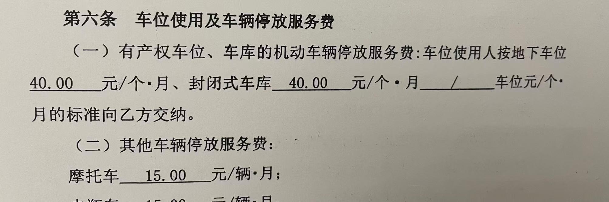 40.00元/个·月。写的是停放服务费,但是我之前没有停放车辆,现在要停车了物业要我缴纳费用,连同之前未停放车辆的时间也要算进去,一起缴纳才可以。这怕是不应该吧?我都没停车的,不是应该我哪个月起开始停车,才开始缴纳相应的服务费才对吗?
