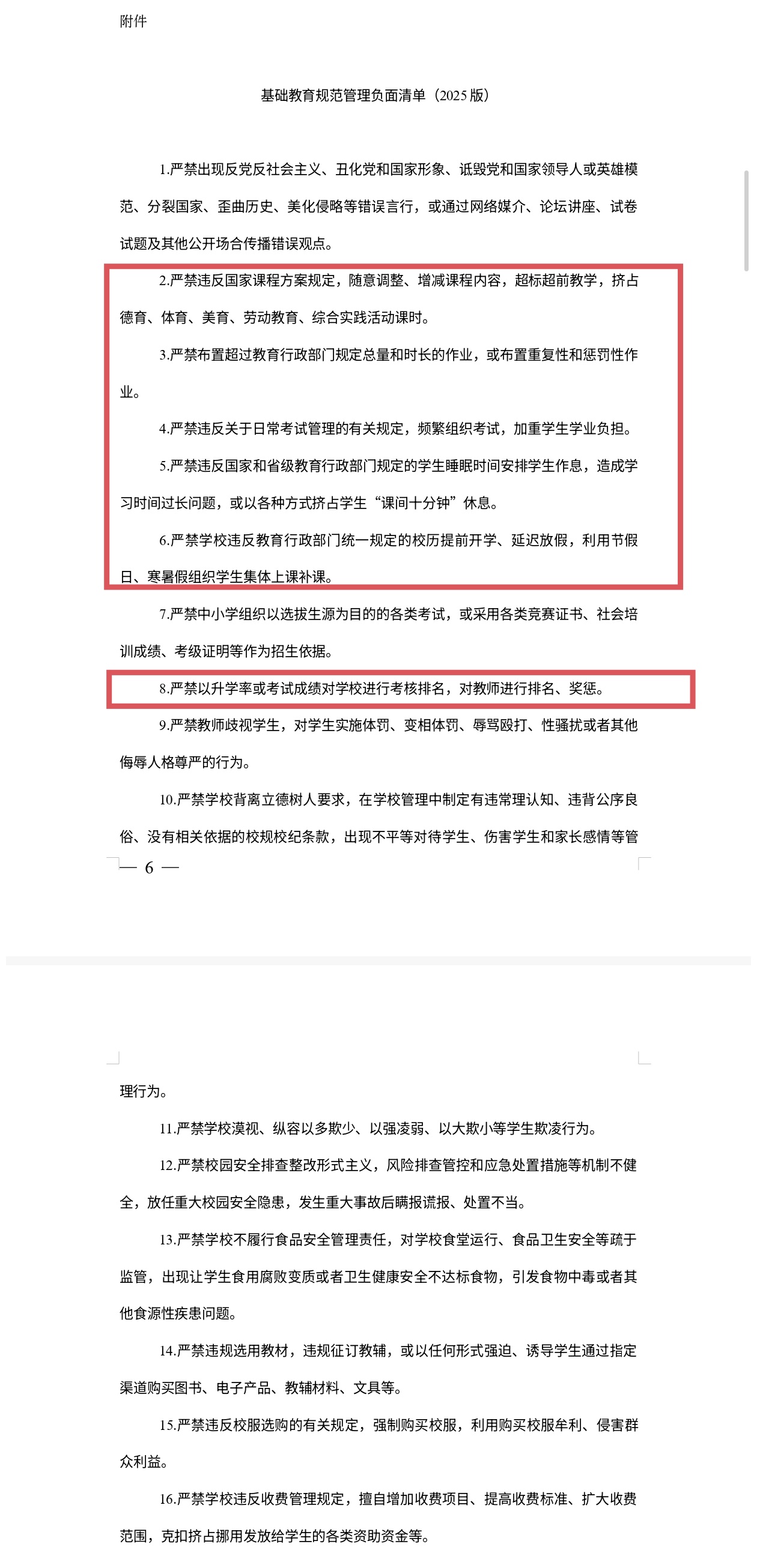 然后,关于双休与补课。周末是否会全面落实到高中阶段?高中阶段的补课是会继续还是会取消?如果不取消,那教育部基础教育负面清单的意义是什么。如果明文规定取消了又会如何监管?