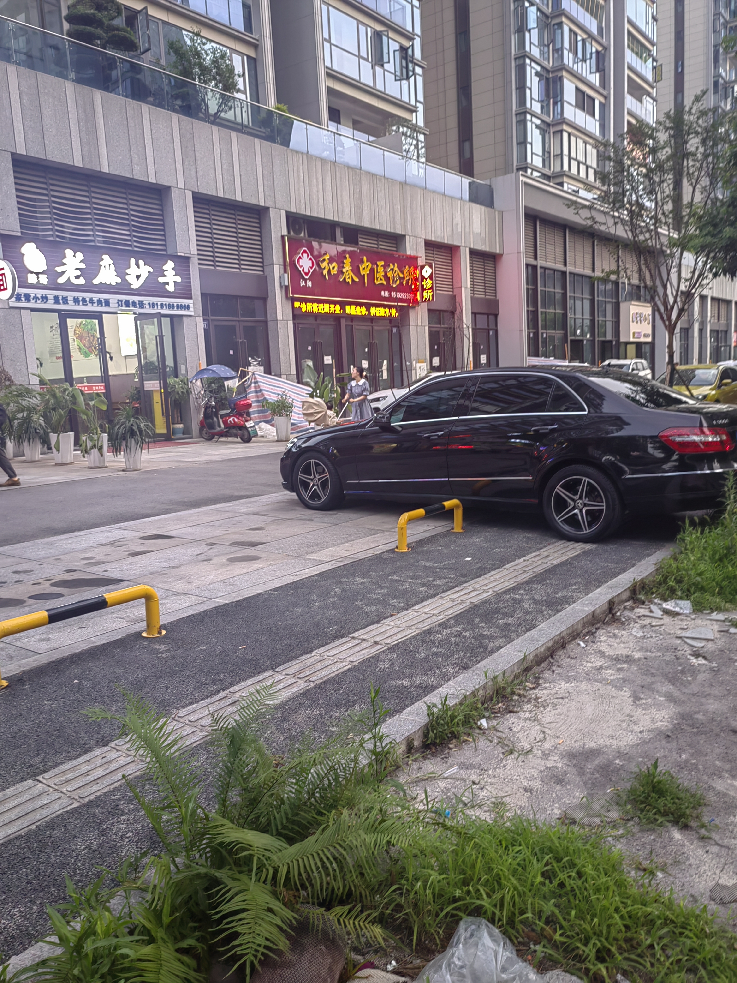 酒城中心上筑高丰路一侧停车场有几处位置设置的挡车桩间距稀疏形同虚设,没有实质性起到隔离停车场和人行道的作用,部分司机停车占用了人行道和盲道。希望执法部门督促整改消除安全隐患,让行人正常通行。图一是“潇允宠艺”门口挡车桩的隔离效果,图二是小区西门“老麻抄手”门口挡车桩的隔离效果。