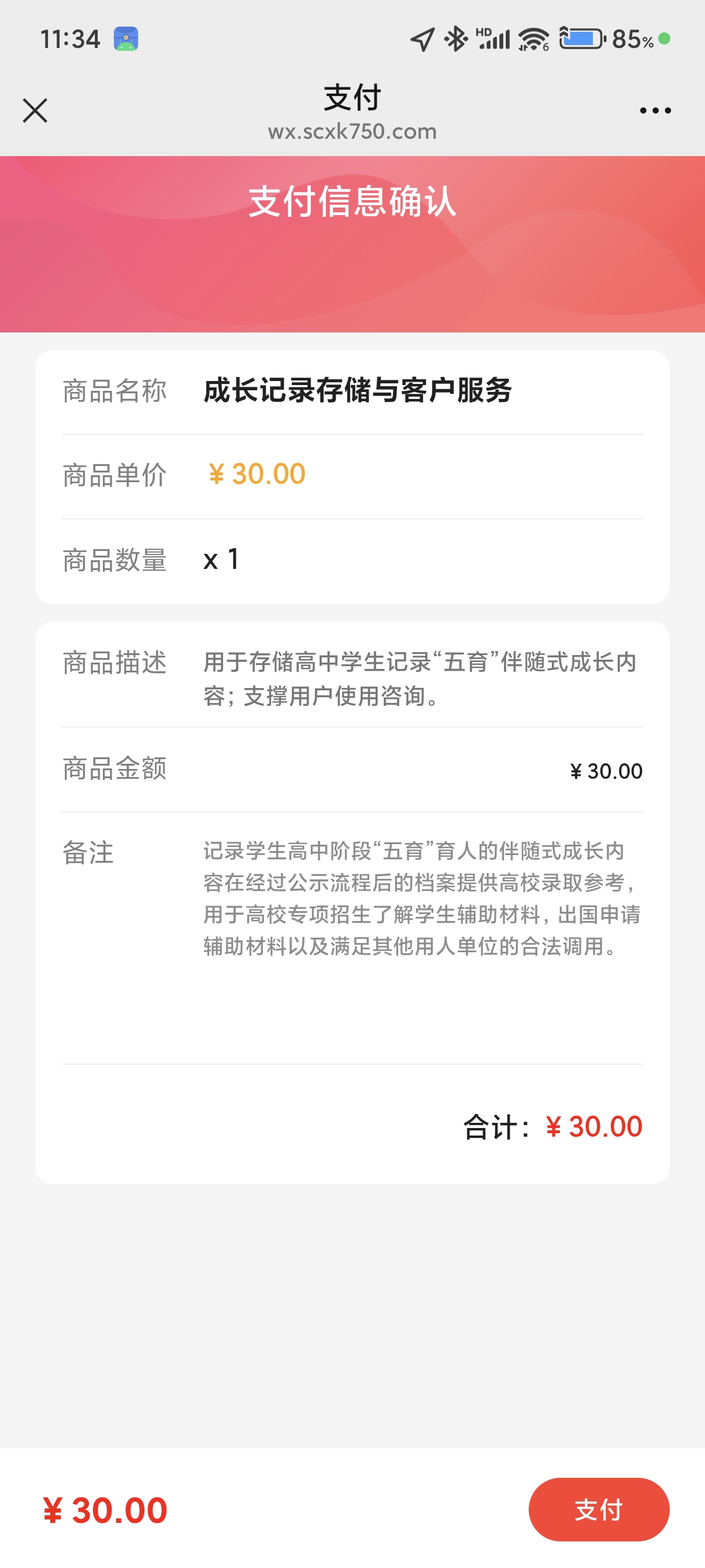 学生和家长可结合自身实际,自愿购买使用成长记录系统,收费标准是5元/期,三年6期共30元,缴纳的费用为平台收取,学校未作强制性要求购买,也未收取相关费用。