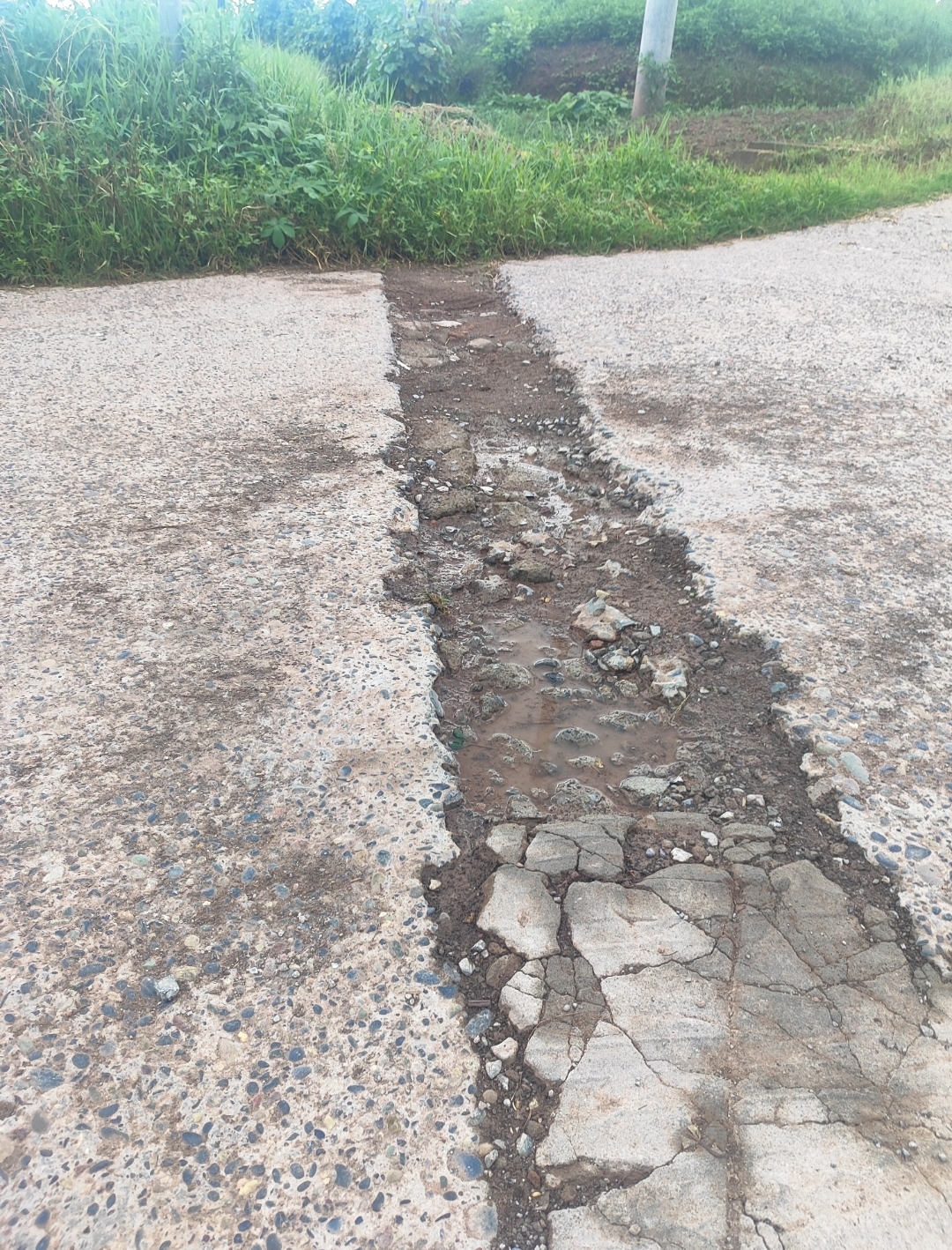 从立石南宇大道经名泉酒业后边道路往三溪一组,汪坝子三叉路口,种粮大户前年开挖公路沟槽安设农田灌溉水管后未按原道路标准(20厘米厚混凝土),只是敷衍了事薄薄的抹了层砂浆,导致公路破损,给村民交通安全带来隐患。望领导督促相关人员按标准恢复道路。如果人人都可以随意破坏公路,民心工程有何意义