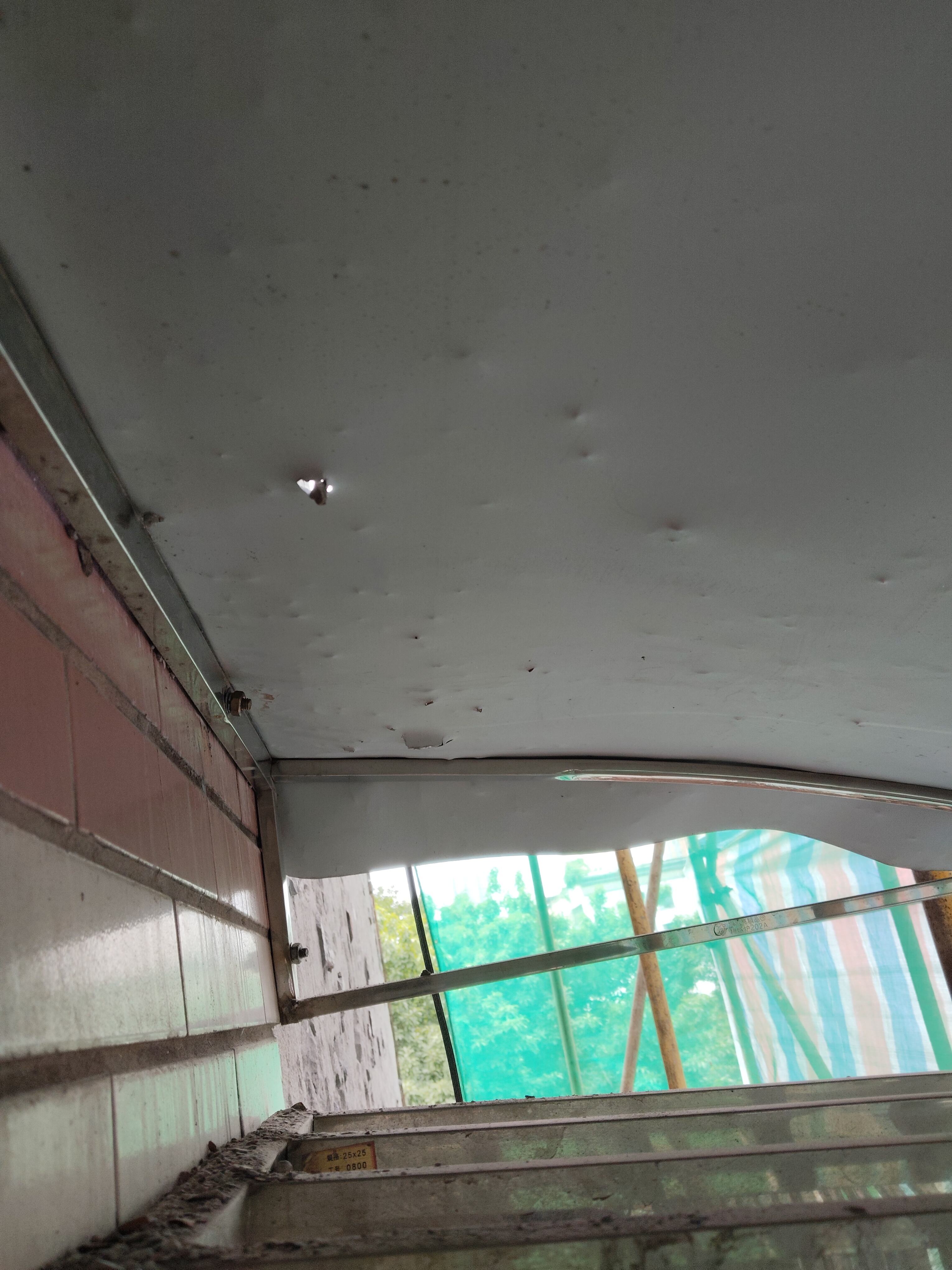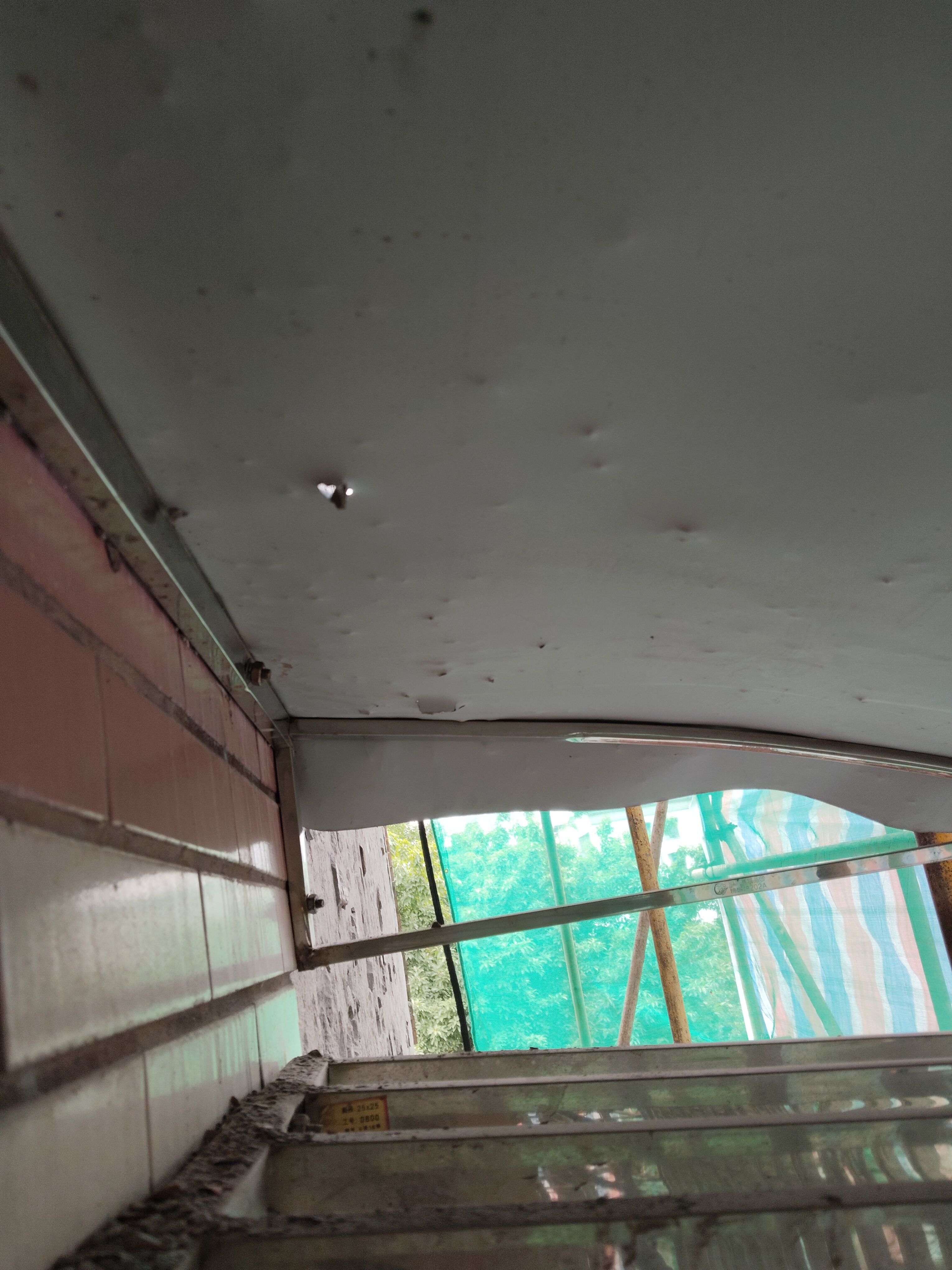 通达小区2号楼外墙不规范施工造成住户的窗户雨棚打烂!在住户提前提醒下施工人员仍旧没有实施安全保护情况下施工,墙面磁砖敲打后掉落下来把窗户雨棚打烂打穿!整个雨棚已砸得凹凸不平,严重地方已经砸穿砸通!