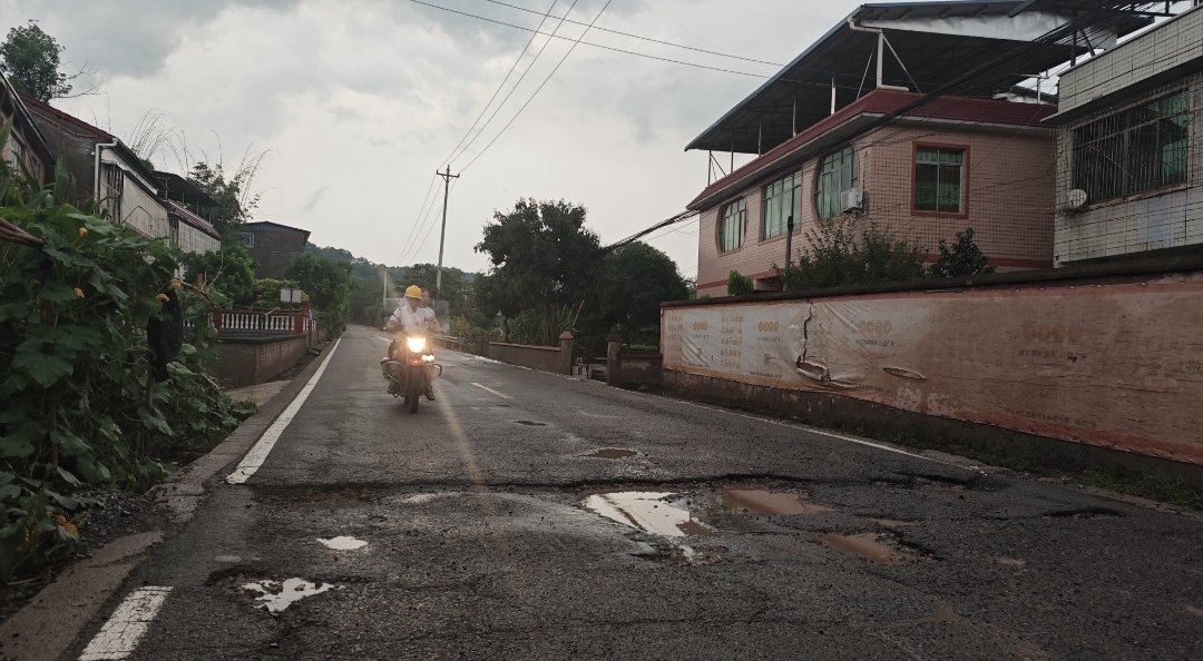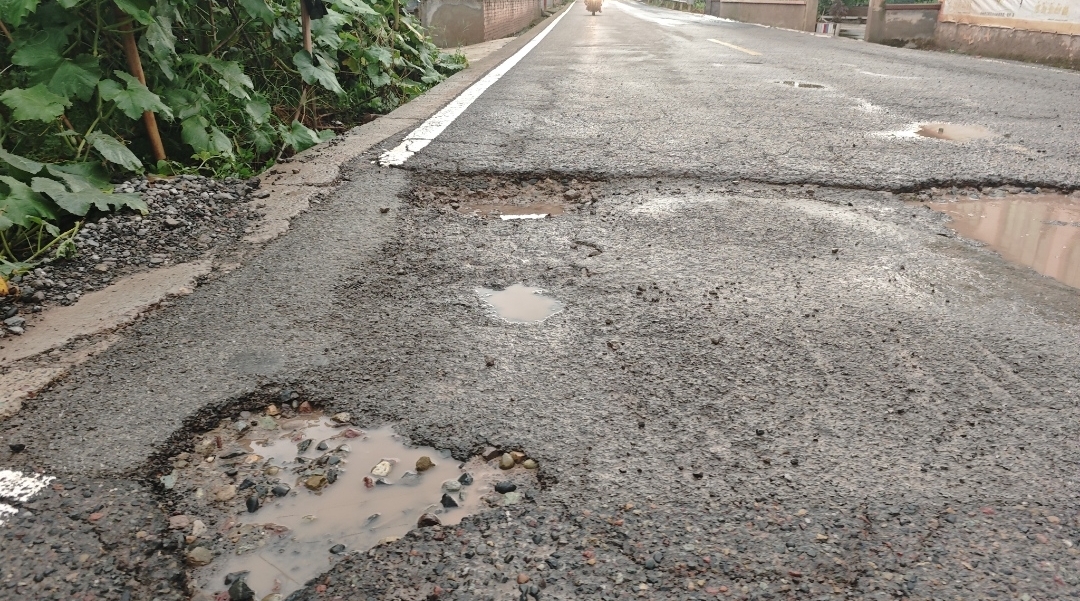 分水至二环路段沙鹅村公交车站位置,道路严重损坏,存在非常大的安全隐患望有关领导关注。