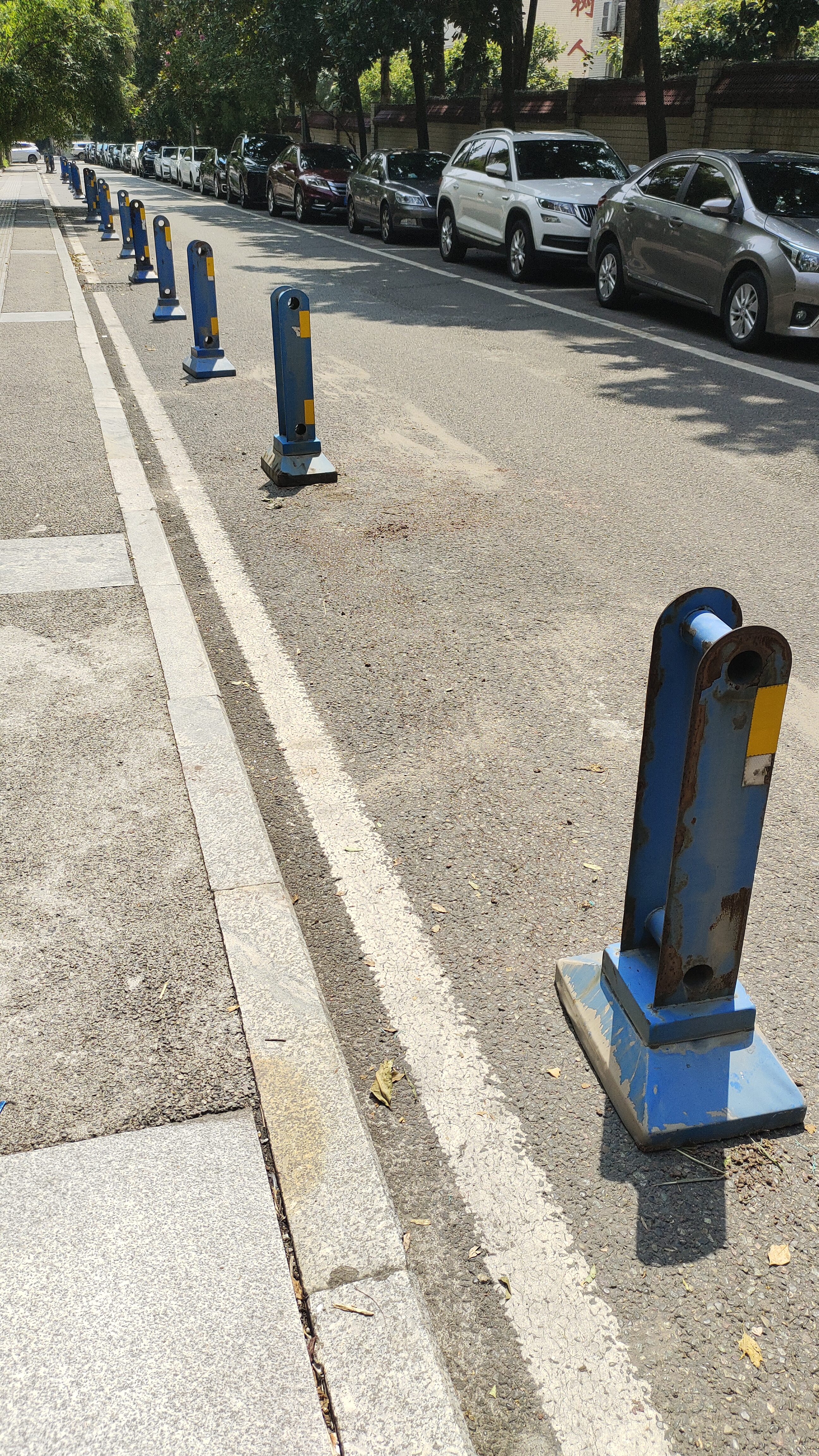 天立街整围栏影响出行,本来封路就很恼火咯,现在整些桩桩更恼火