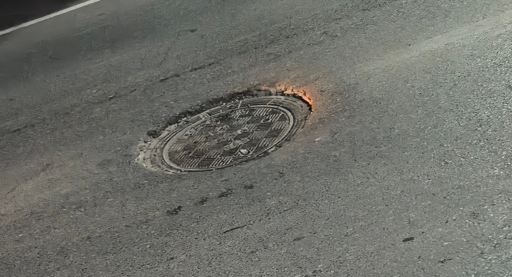 护国镇永宁街铁路桥下往医院方向走100马路处下水道井盖下沉 希望相关部门及时组织修复