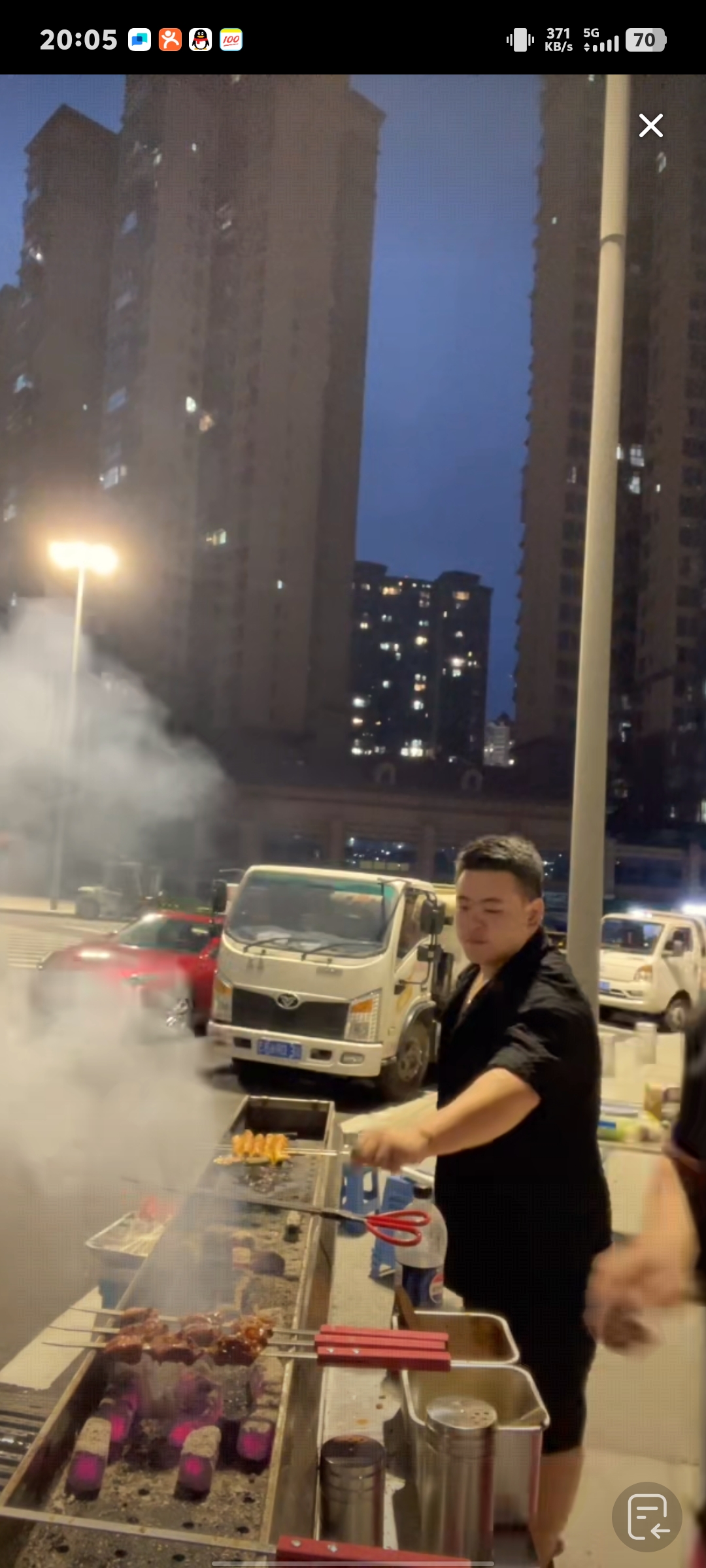 烧烤摊油烟排放违规 严重影响过路行人 摊位没有加装吸油烟机器