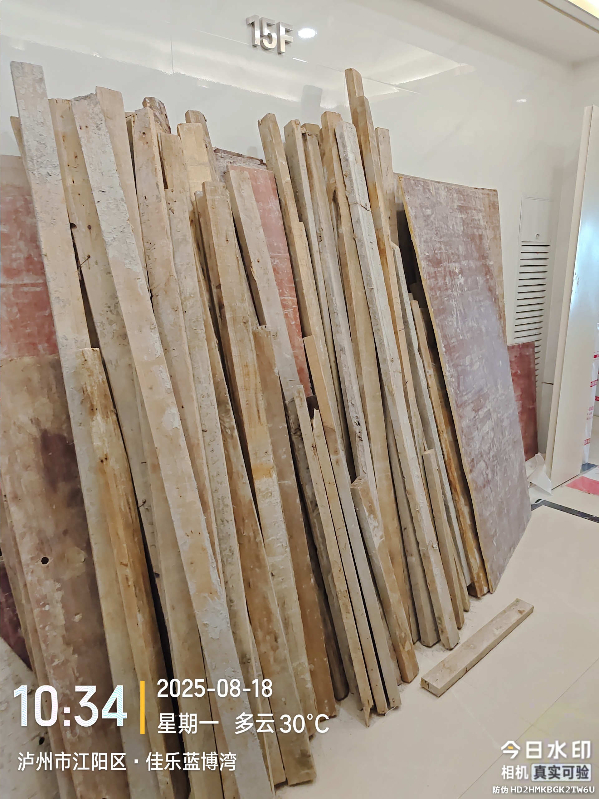 2025年8月18日,佳乐蓝博湾三期33栋1504业主将现浇搭建的木板长时间,甚至已经超过半个月防止在电梯出口,和通往楼顶的消防通道,导致非常严重的堵塞问题。