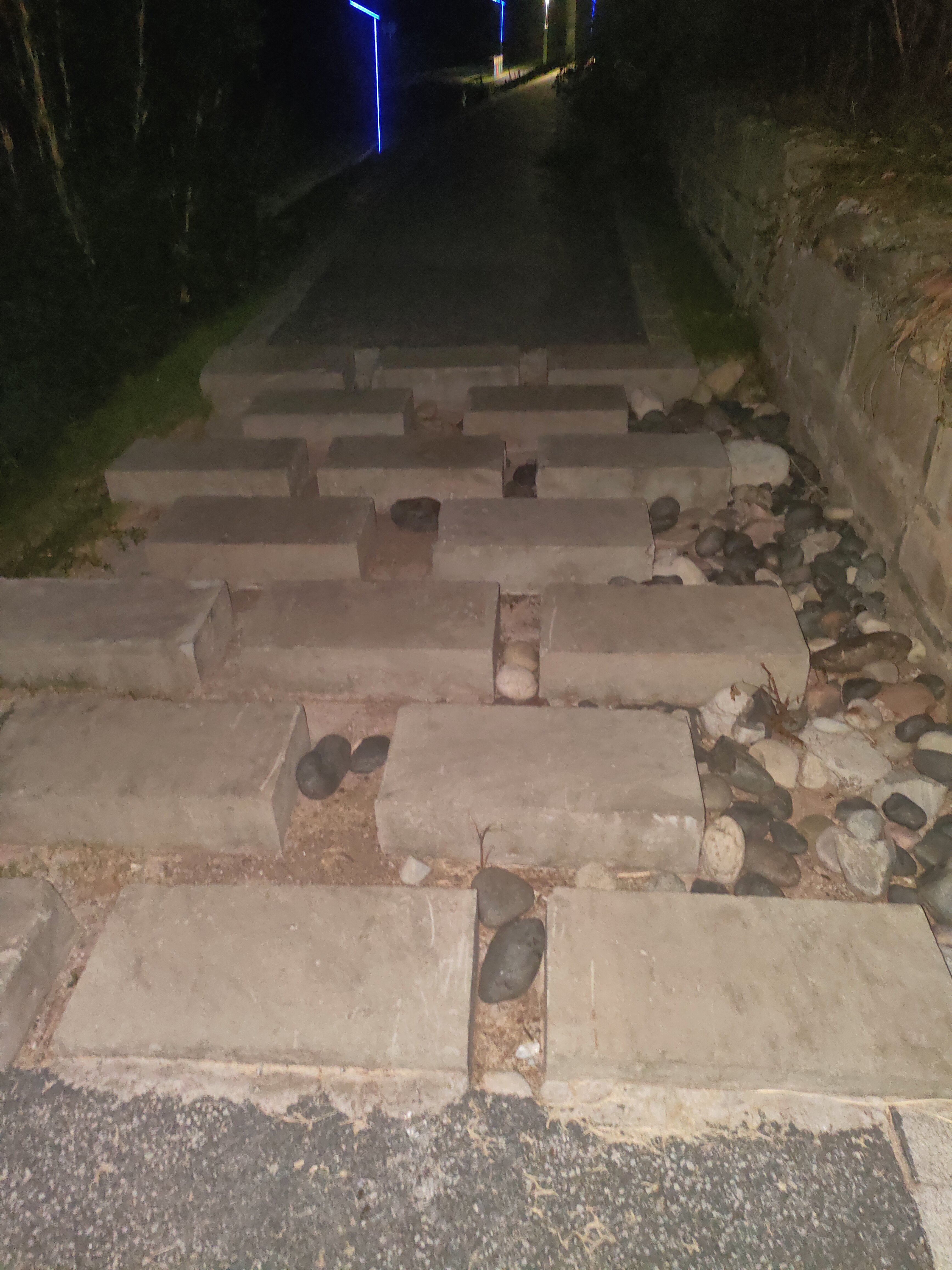 黄舣镇酒谷湖内,一处步道存在安全隐患,道路长约4米,中间为石头续道。石头与石头之间为沟壑。尤其是夜间,前后都有灯,恰恰此处刚好没有设置灯。已有多人次摔倒受伤。图片为闪光灯拍摄效果。建议相关部门及时进行整改,保障过往民众人身安全。