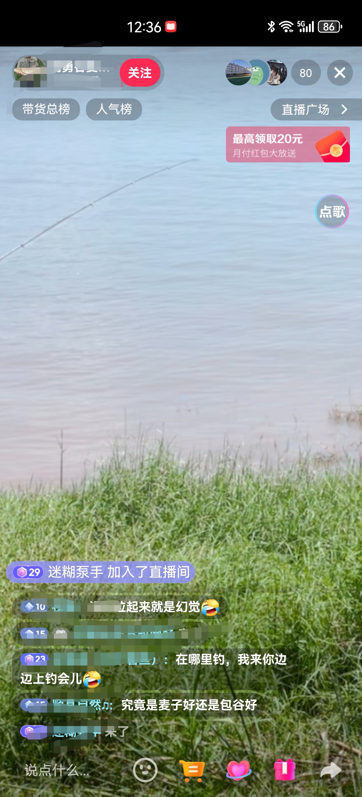 纳溪地区长江边开直播钓鱼 希望还是管管
