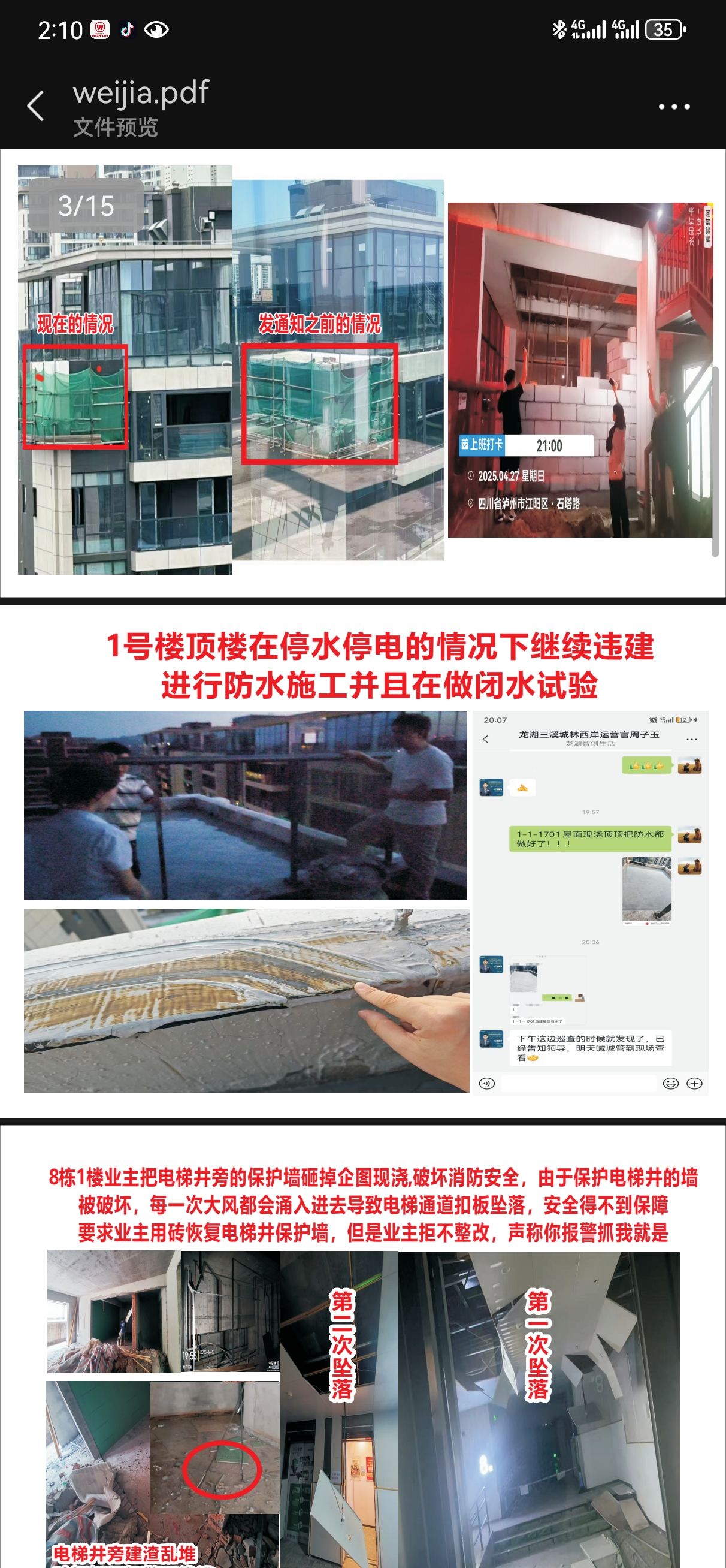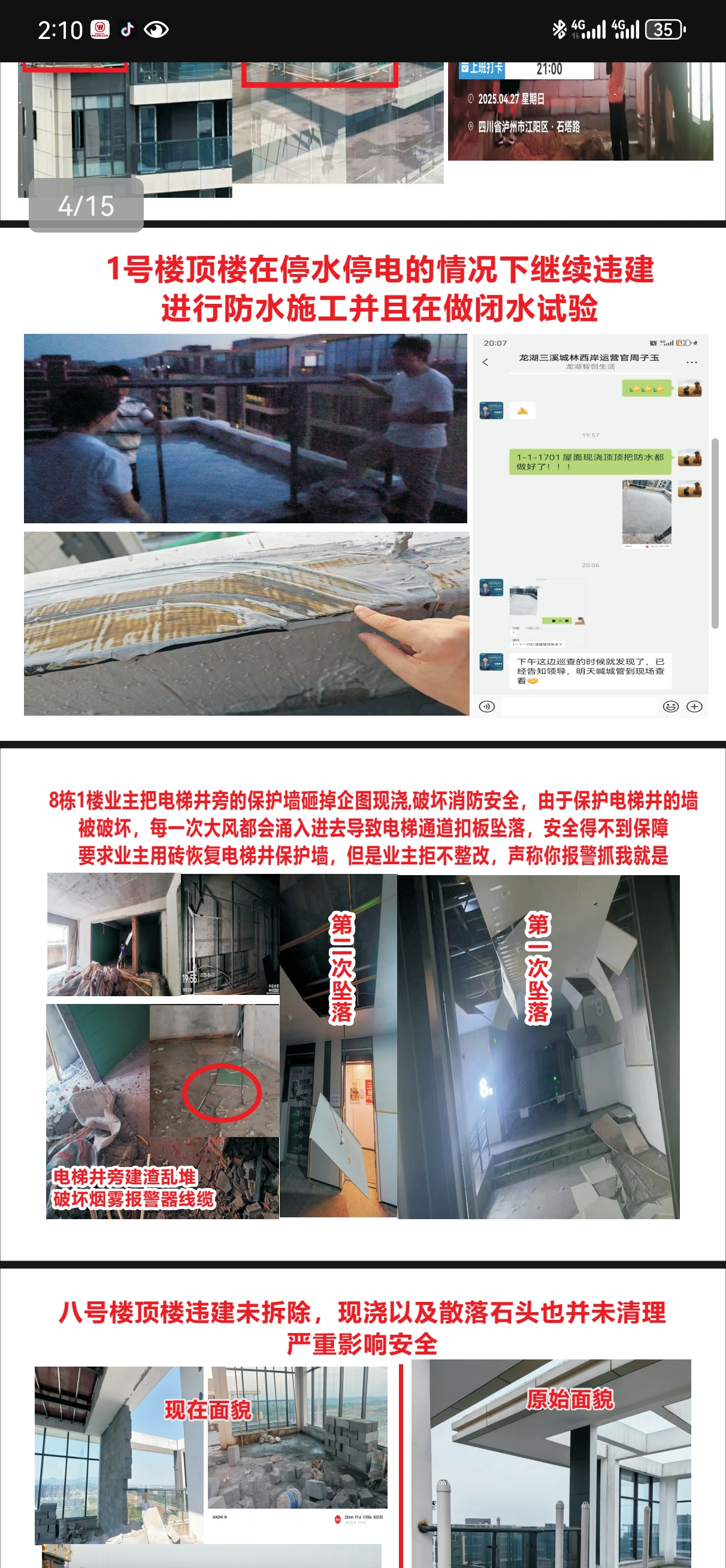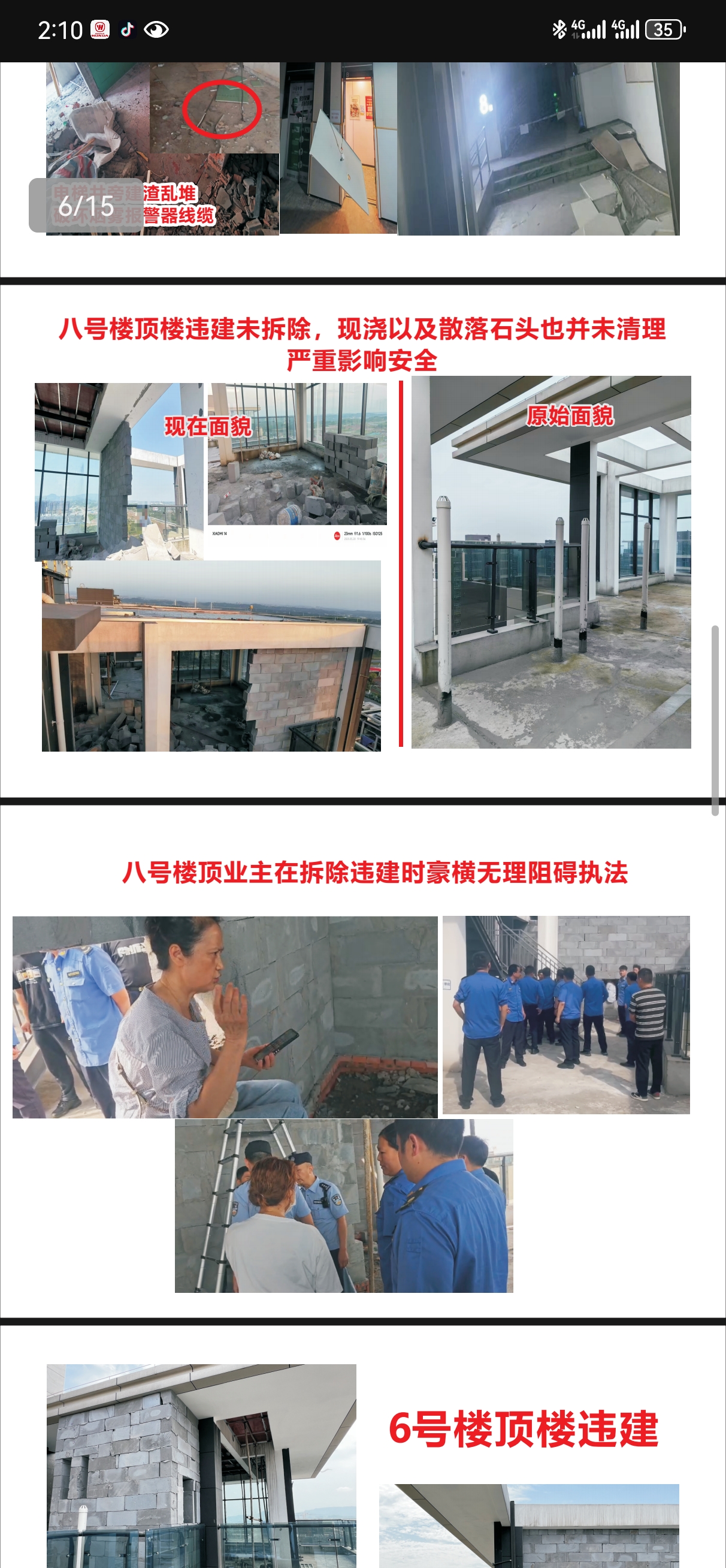 小区楼顶违建占用消防通道 希望相关部门重视处理