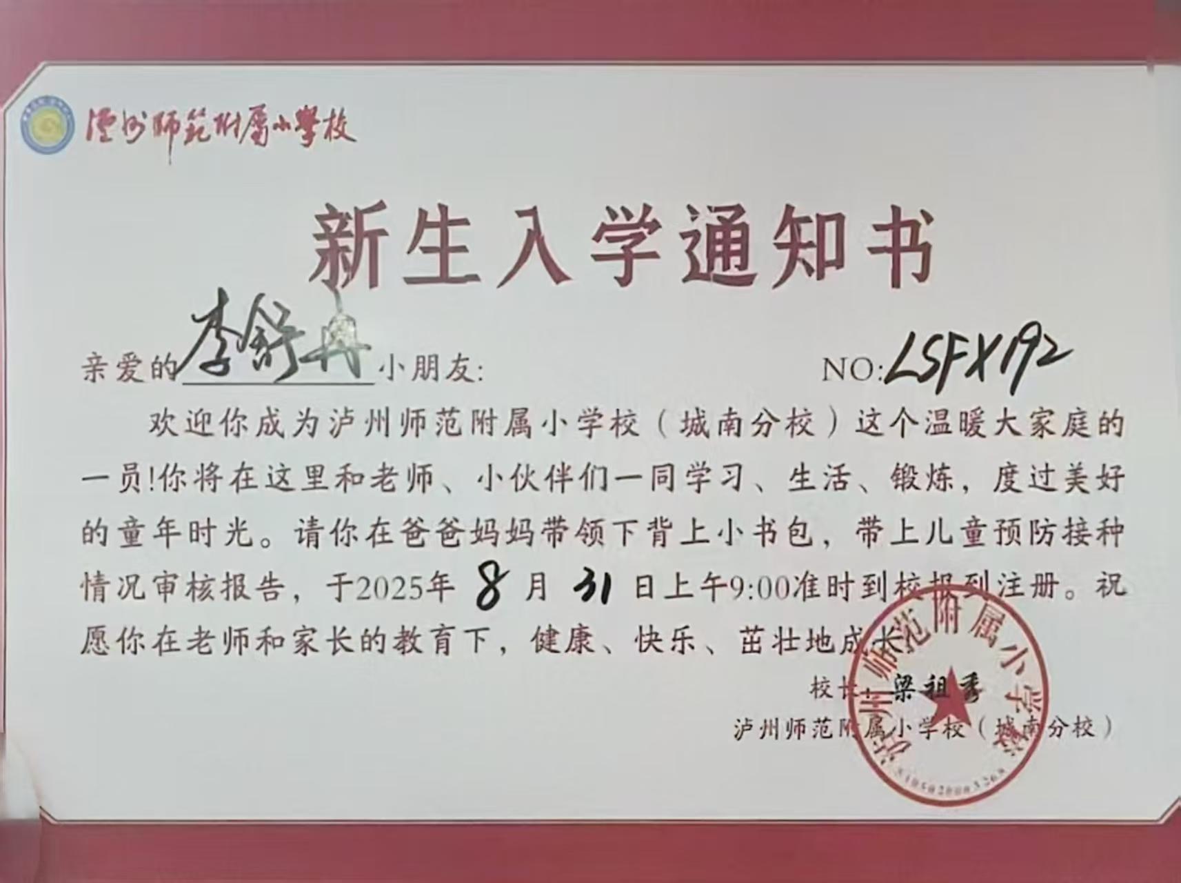 按照《泸州市江阳区2025年义务教育学校招生工作方案》,2025年7月上旬,各街镇根据招生工作方案录取新生。学校发放义务教育入学通知书,学生按时到录取学校报到。