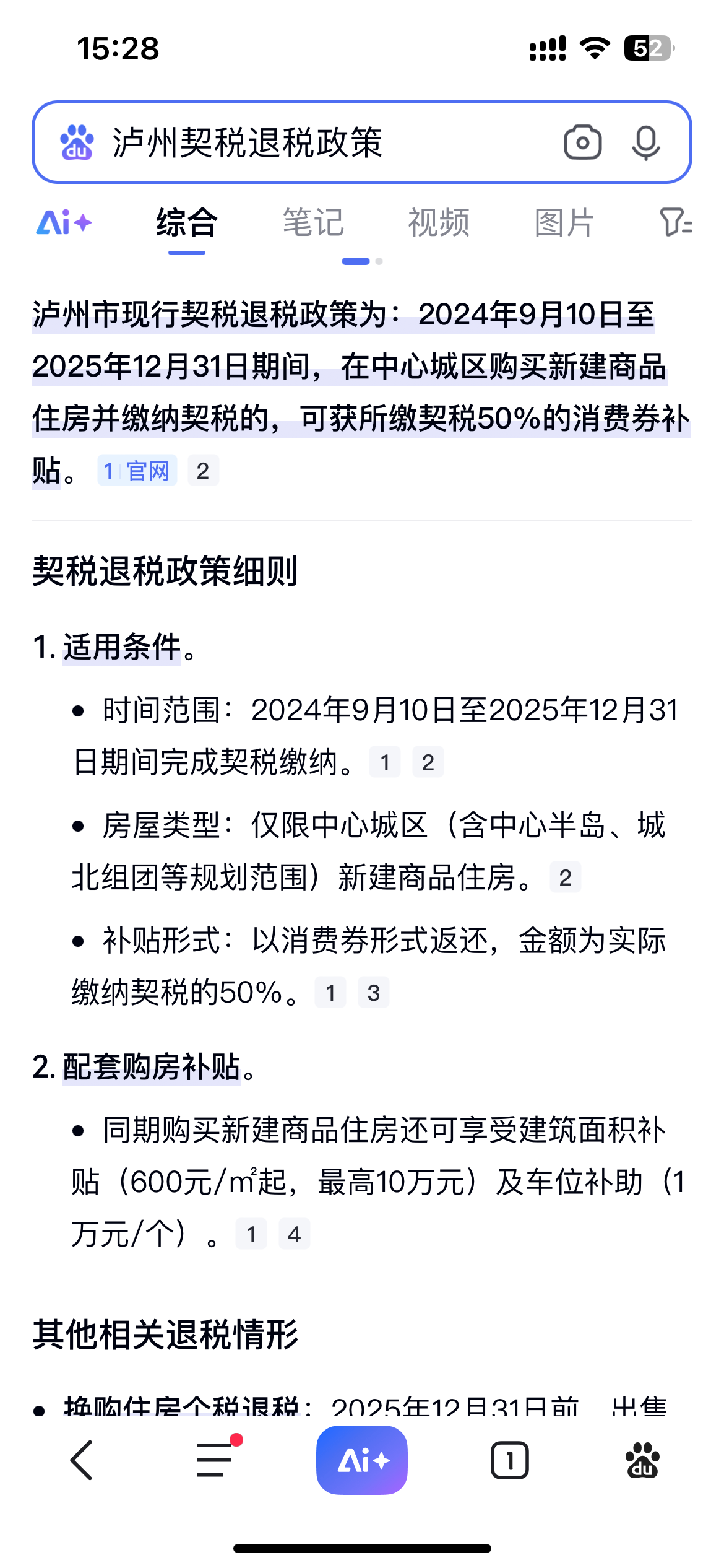 (二)根据《购房契税发放消费券实施细则》文件精神,在泸州市中心城区购买新建商品住房且已完成商品房买卖合同网签备案,自2024年9月10日-2025年12月31日期间缴纳契税,按所缴纳契税的50%发放消费券,申请时间为缴纳契税后90天内,逾期不再受理。在2024年9月10日前已缴纳契税的购房人不符合该政策申请条件,若有疑问,请致电泸州市龙马潭区住房和城乡建设局(0830-2522135)详细咨询。