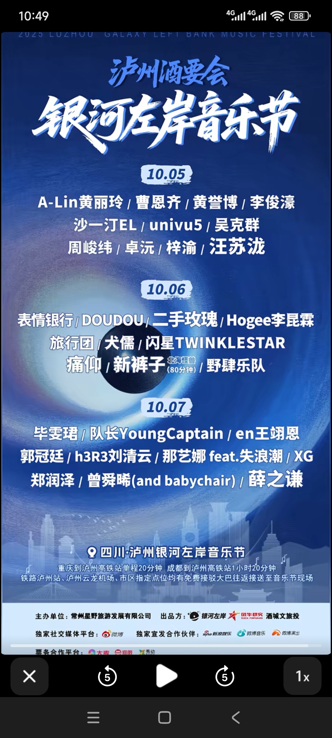 请问是不是已经确定十月五号到七号梓渝,薛之谦等一大波明星到泸州开演唱会