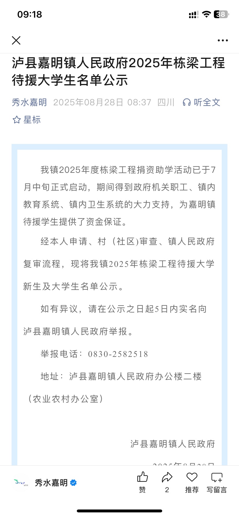 今有热心群众于今日即2025年8月28日,通过泸县嘉明镇人民政府在秀水嘉明公众号看到该政府发布“泸县嘉明镇人民政府2025年栋梁工程待援大学生名单公示”,但事前本地村民并未接收到或者听到任何有关“栋梁工程”相关事宜。经打入举办电话咨询,官方答复是村上在负责宣传,经核实,村上并未落实宣传责任,乡镇亦未履行相应监督义务。更为滑稽的答复就是,村上负责人却说工作忙没时间宣传,就凭年龄筛选了一下村上无满足要求的待援大学生。请问:1、村上相应负责人是否有权凭借年龄筛选栋梁工程待援大学生名单;2、仅凭年龄为依据,是否满足“栋梁工程”相应条款;3、“栋梁工程”作为一个利民公益活动,为何只有官方公示结果,没有官方宣传,是否存在内定嫌疑,流程只是一个走过场行为;4、相应各级负责人,工作是否到位,村上负责人是否工作太忙,应该减负还是说不作为。望相关部门及领导可以给民众一个满意答复。