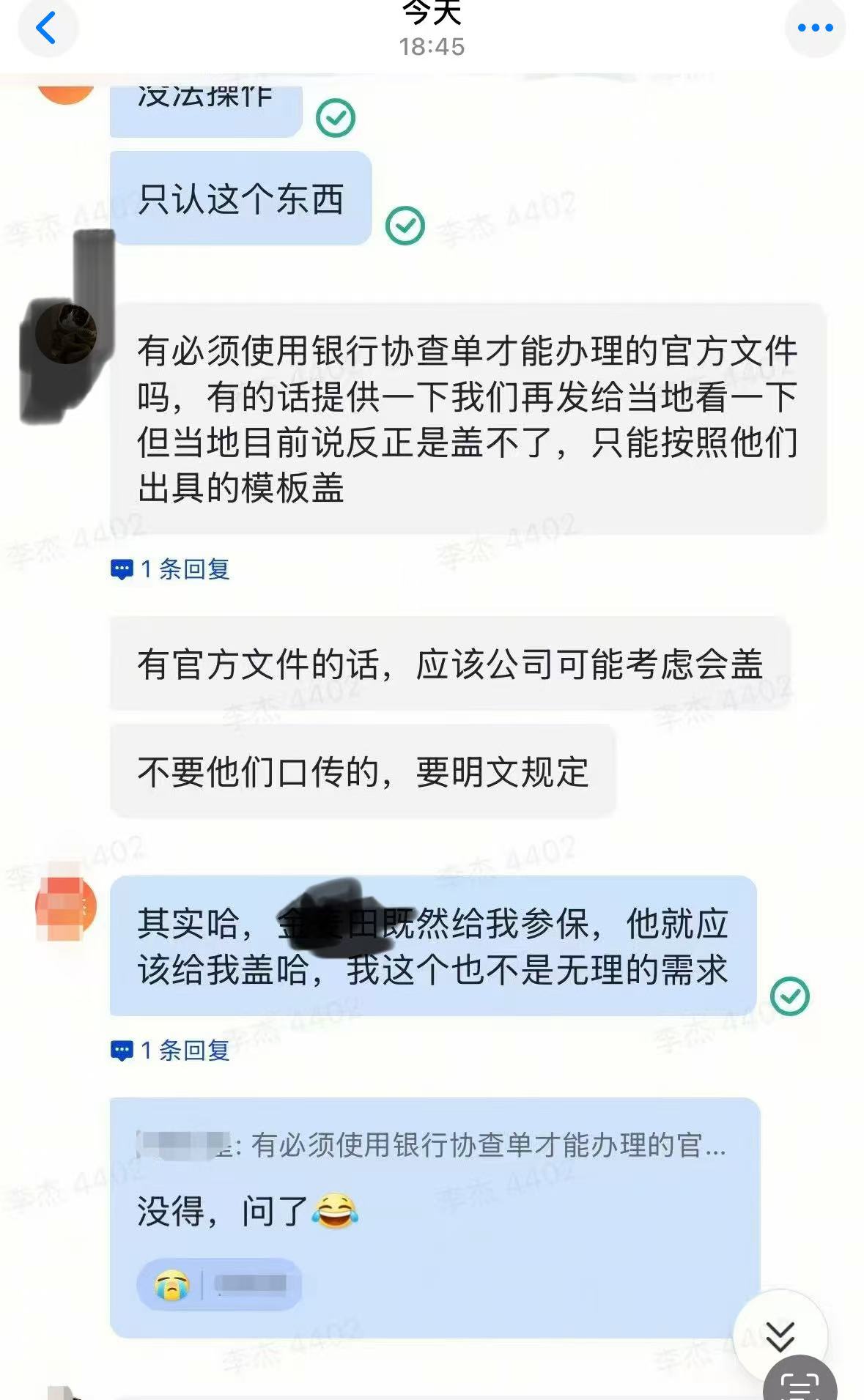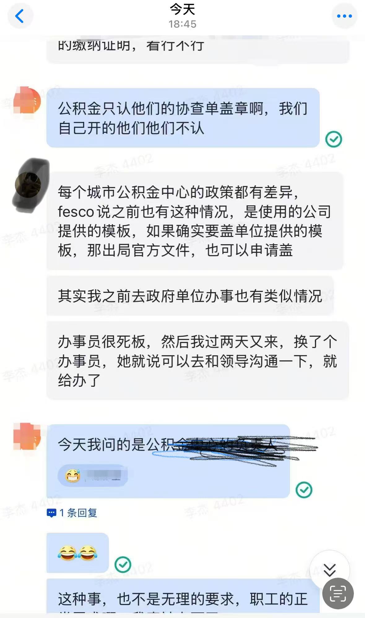 本人于2024年在江阳区购买一套商品房,今年7月前往公积金中心办理商转公手续。去年办理的是商业贷款,近期因为公积金资格已达到商转公的要求,所以我想将我的商业贷款转为公积金。由于我的公司属于第三方派遣公司,公积金中心出具协查单,要求我们第三方公司盖章,随后我联系我们公司的HR,公司的回复是我们的第三方代发公司不给我盖章,也就是社保代缴方。HR说我又不属于这个公司,他没法给我盖章。如果需要我们服务公司给我盖章的话,他们需要公积金官方有一个正式的文件。但是我去公积金中心柜台上,柜台专员告诉我上面没有这个官方文件。公积金中心要求我盖章,另外一方又不给我盖章,让我处在中间左右很为难,我也不知道该怎么办。现在希望得到领导的帮助,谢谢