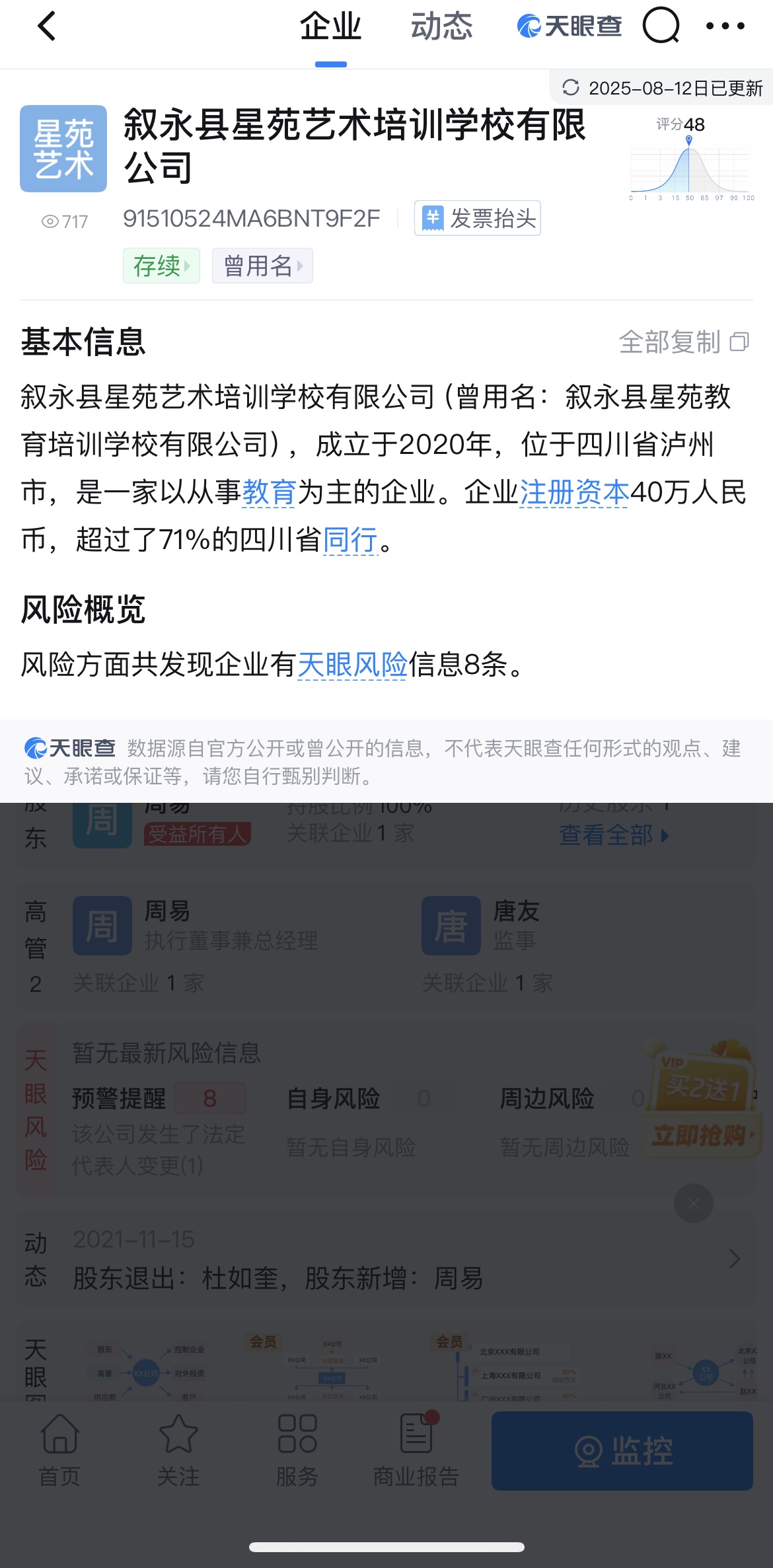 经查,叙永县星苑艺术培训学校有限公司是一所艺术类培训机构,由叙永县文化广播电视和旅游局监管。2025年9月15日,县文化广播电视和旅游局、县教育体育局到叙永县星苑艺术培训学校有限公司检查,未发现该培训机构开展学科类培训。经拨打您所提供宣传图片中的电话号码,对方告知宣传图片中的培训机构位于泸州市维多利亚小区,不在叙永县区域内。经核实,叙永县教育和体育局全体职工均未入股叙永县星苑艺术培训学校有限公司,也未参与该培训机构经营。