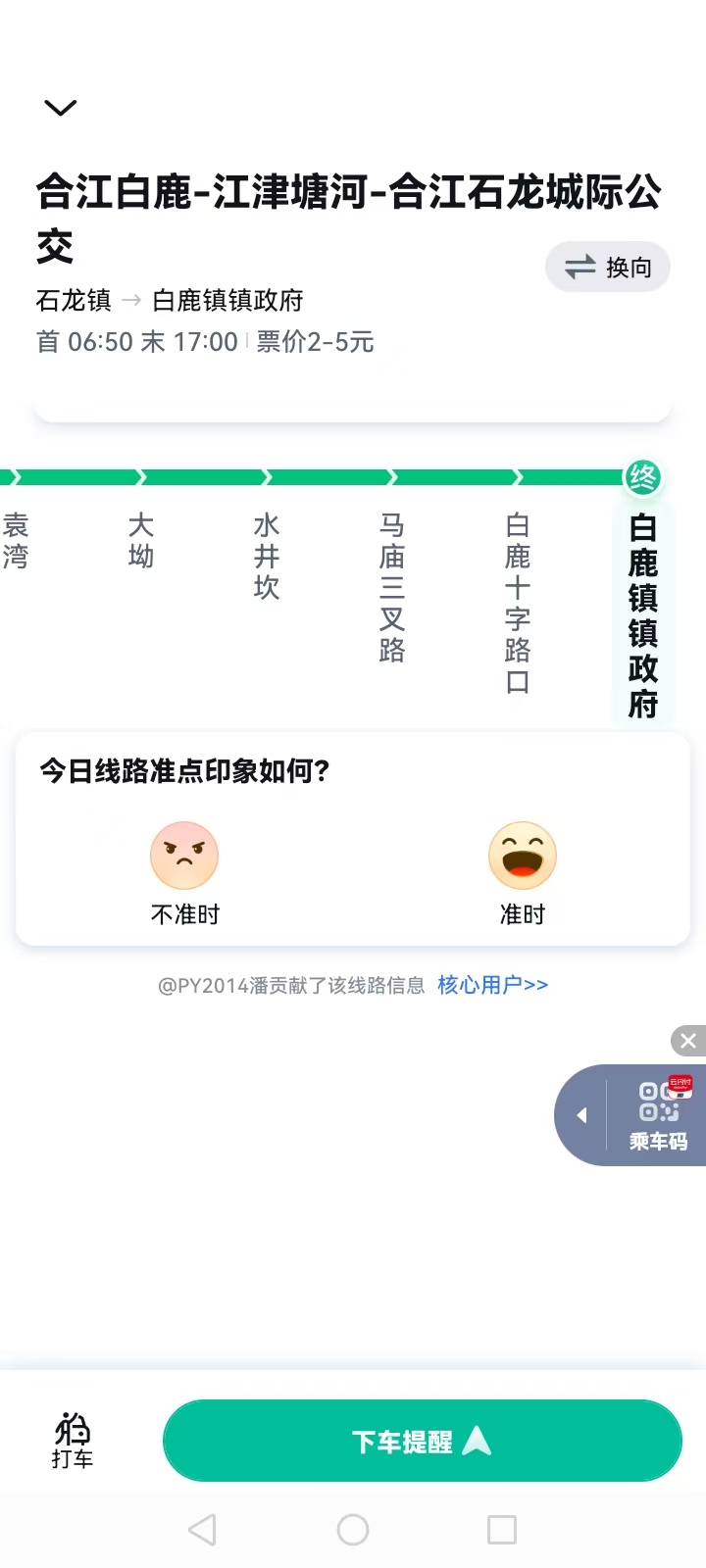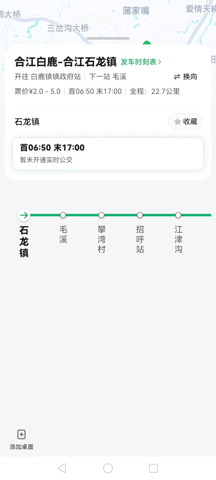 您所述川渝公交线为省际公交,分别隶属四川省和重庆市管辖,其中四川省合江县运行2台,重庆市江津区运行2台,确不便统一编号。目前第三方平台(高德地图)未采集该条线路信息,暂不支持该平台查询。目前白鹿-塘河-石龙省际公交运行线路站点具体为: