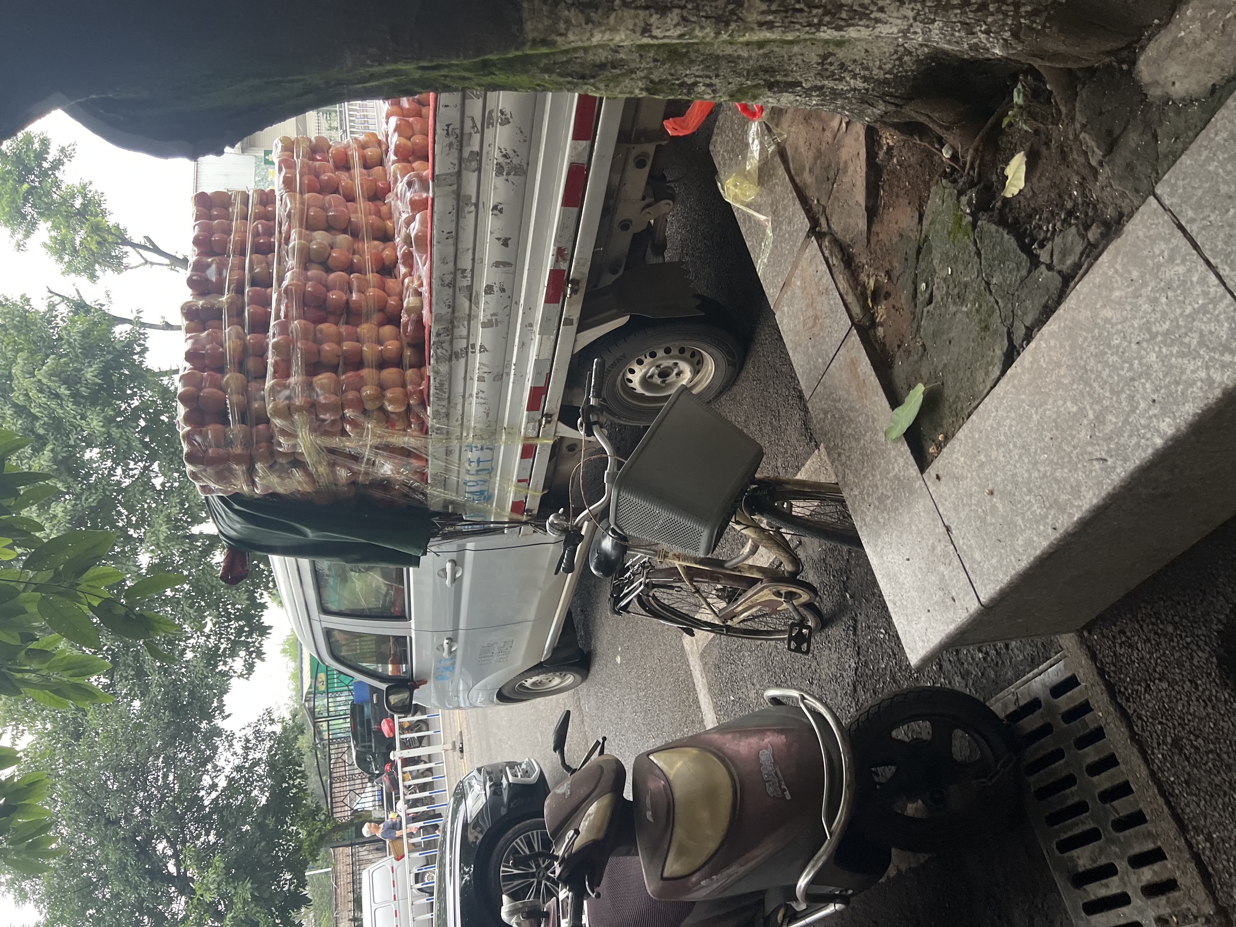 鱼塘农贸市场外主干道外地牌照小型货车横停,占用人行道摆摊的问题
