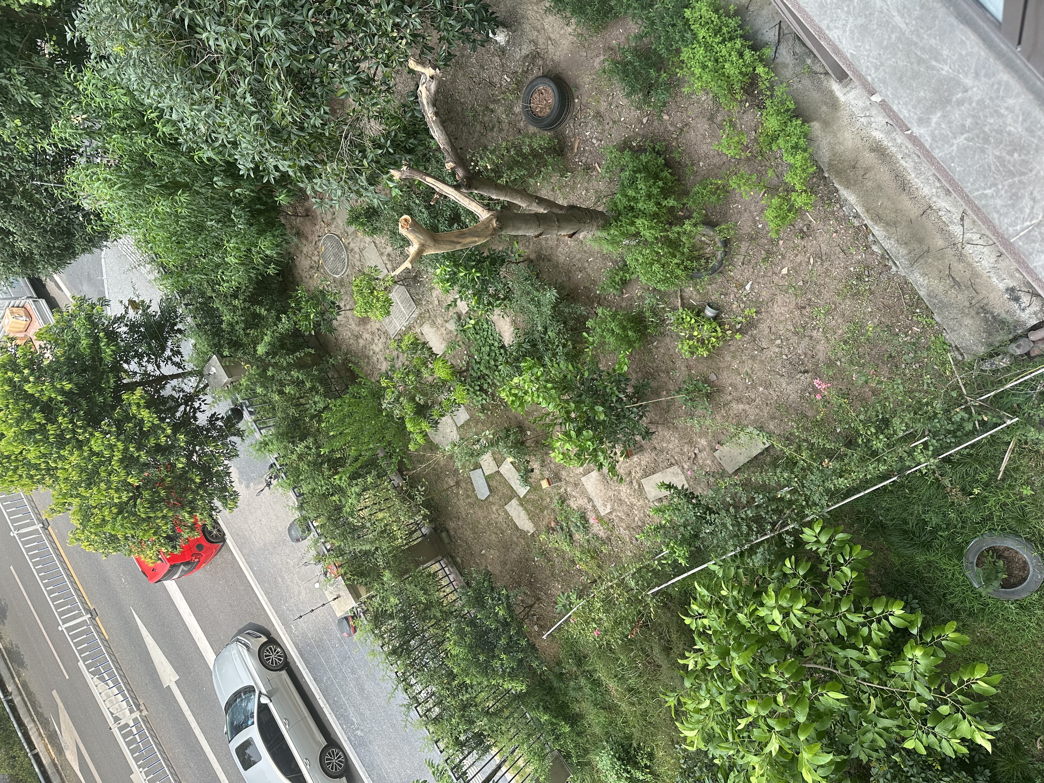 阳光十二墅1号楼2单元一楼违规侵占公共绿地