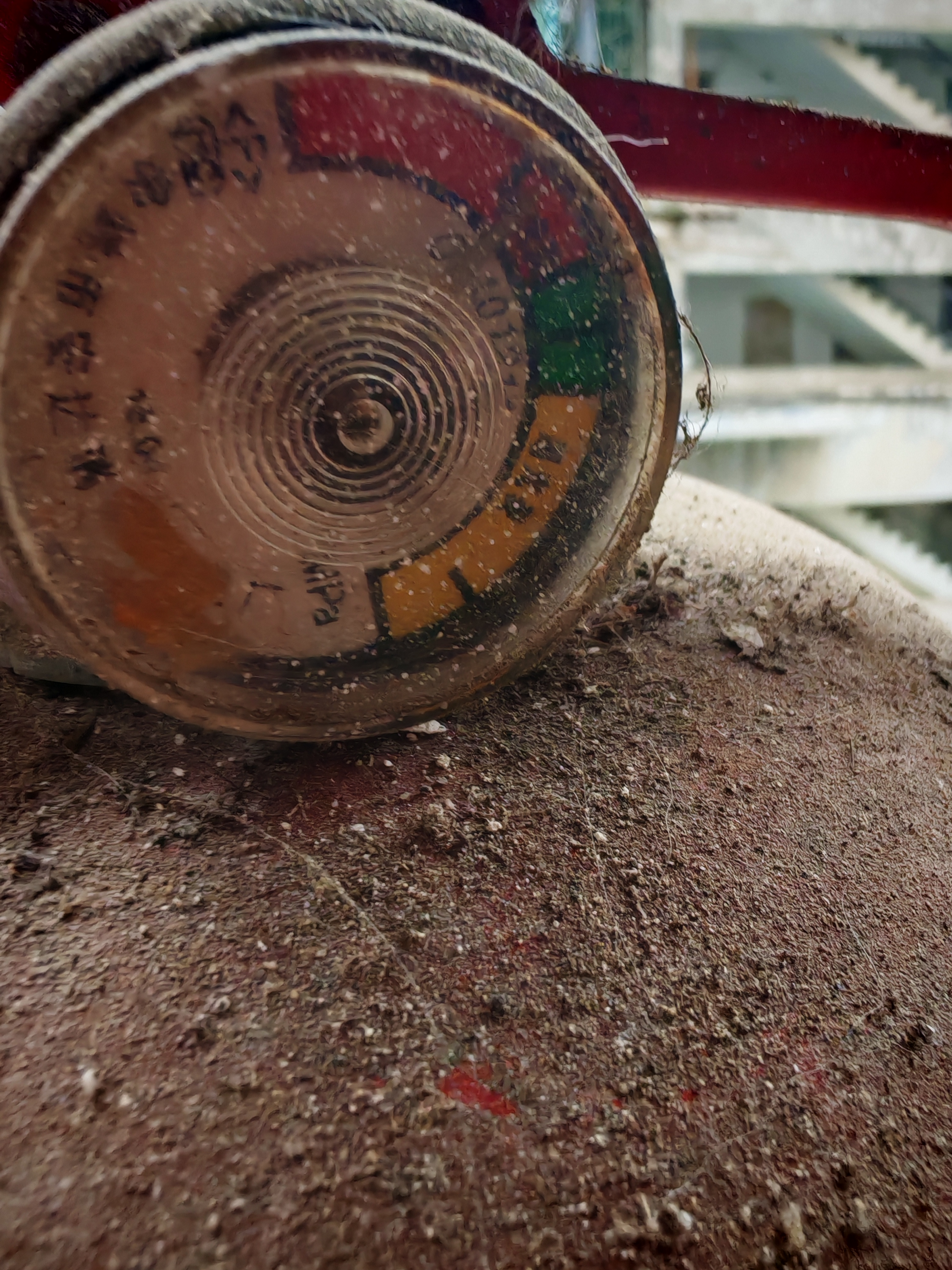 居民楼灭火器压力低限,处于红区,消防点检卡定期检查正常,敷衍了事。