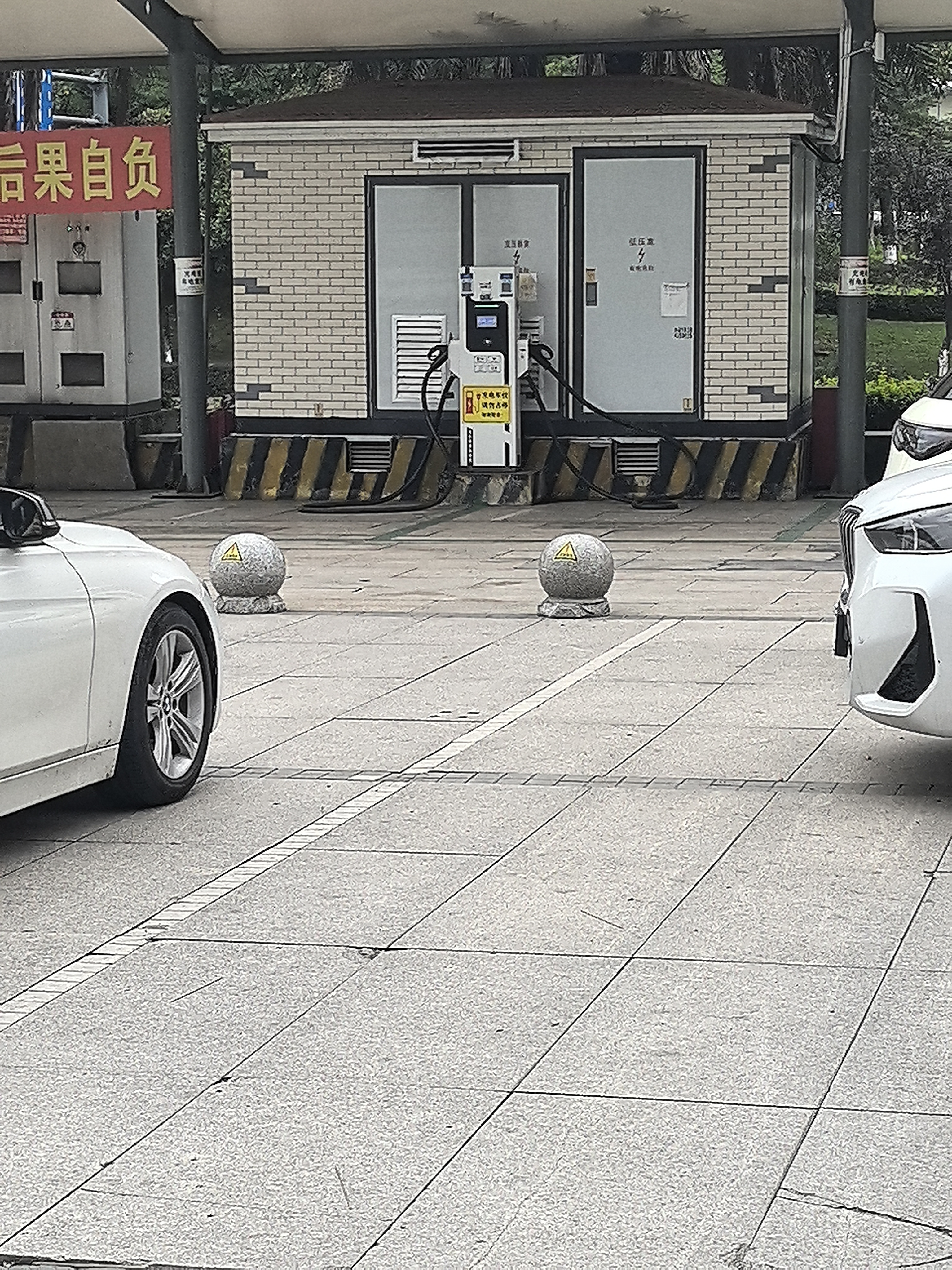 西南商贸城一区充电桩私设路桩,侵占公共停车位