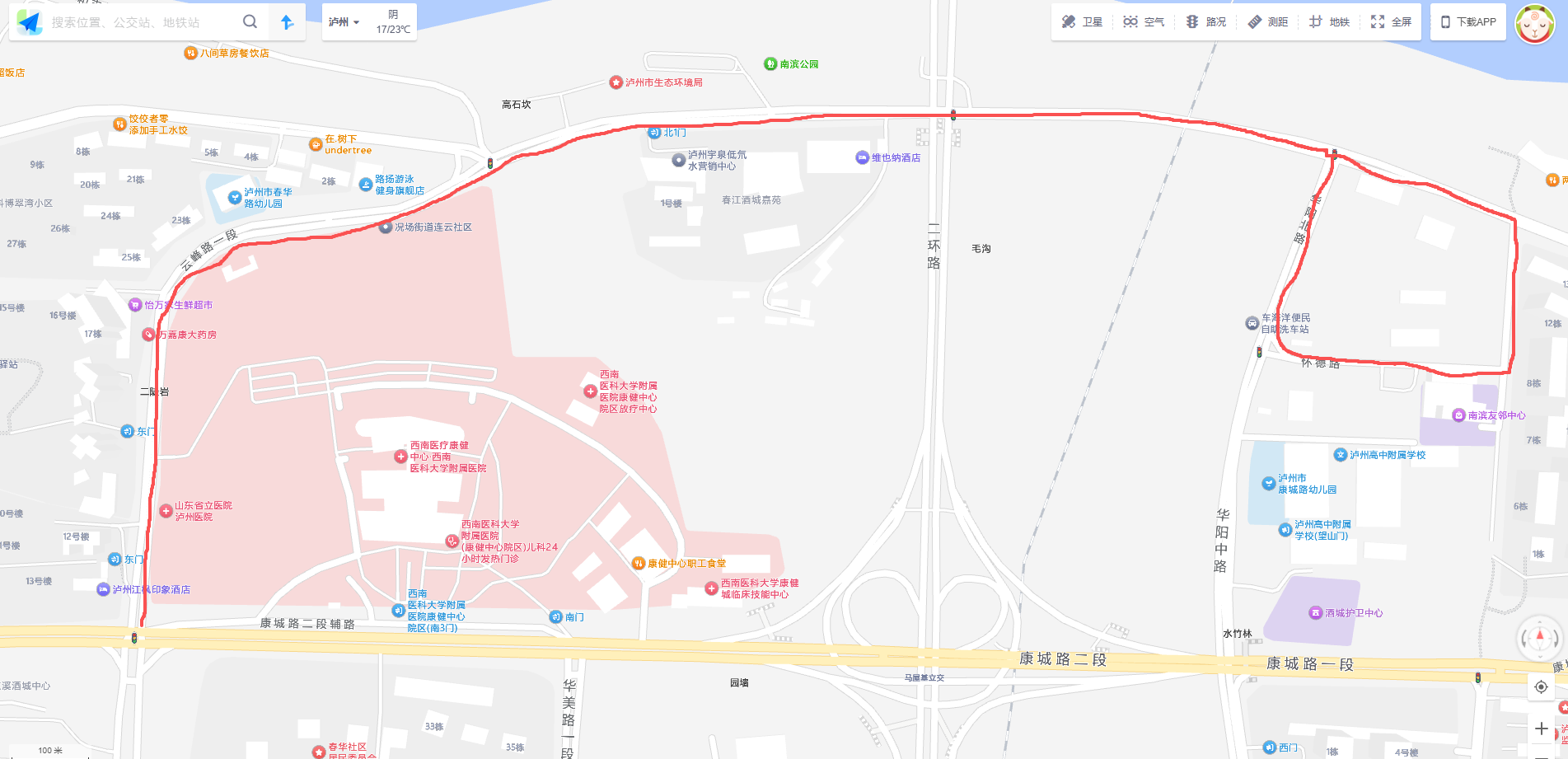 从康健院小区出来经过云峰路一段→春华路一段→南滨友邻中心(泸州高中附属学校),属于限行范围吗?详见附图红色示意区间段,在限行时间段可以正常行驶吗?
