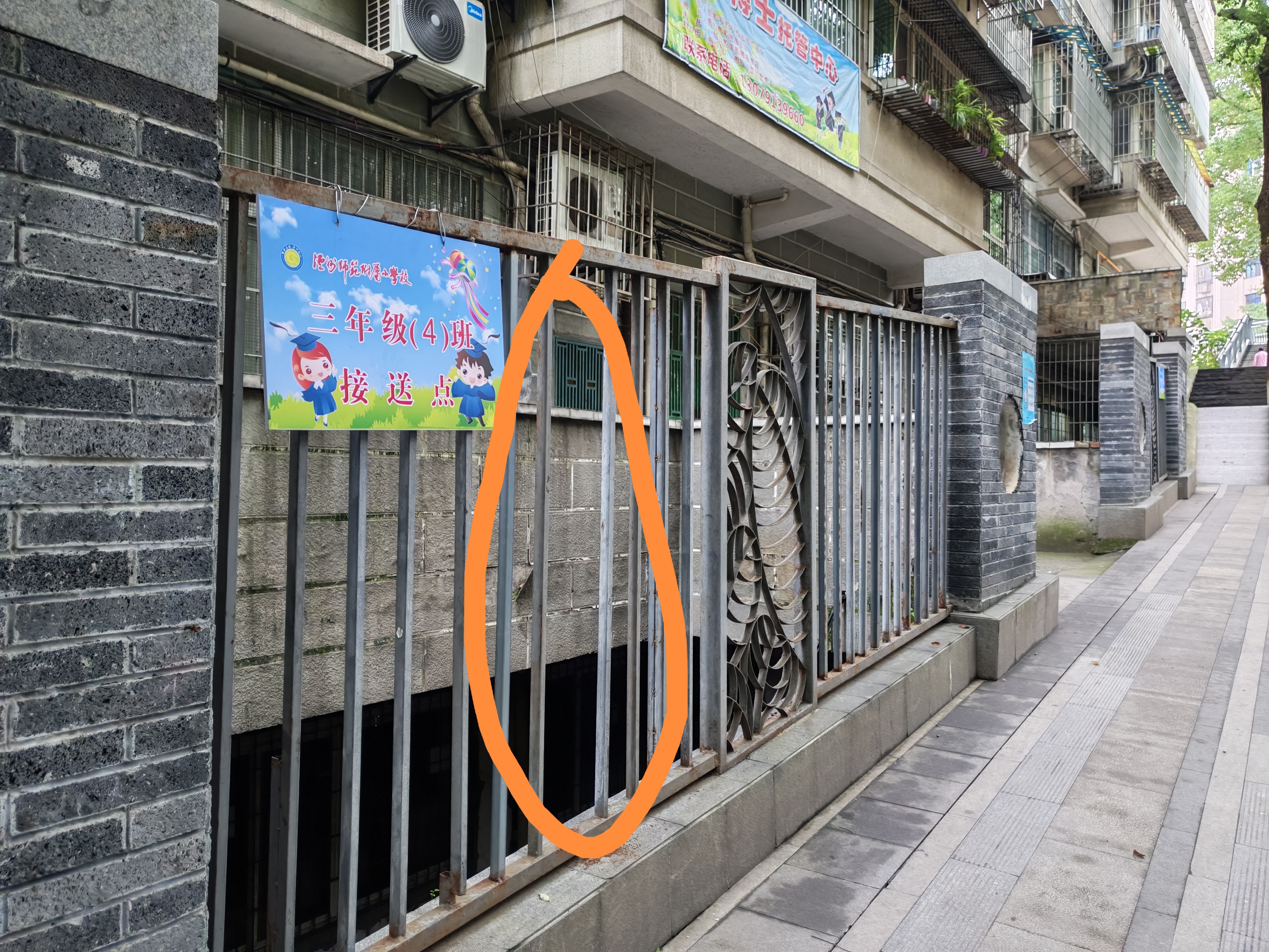 凤凰公园靠近江阳中路144号1栋2单元外,公共围墙栏杆破损,可以穿过一人,此处过往学生家长多,存在安全隐患。