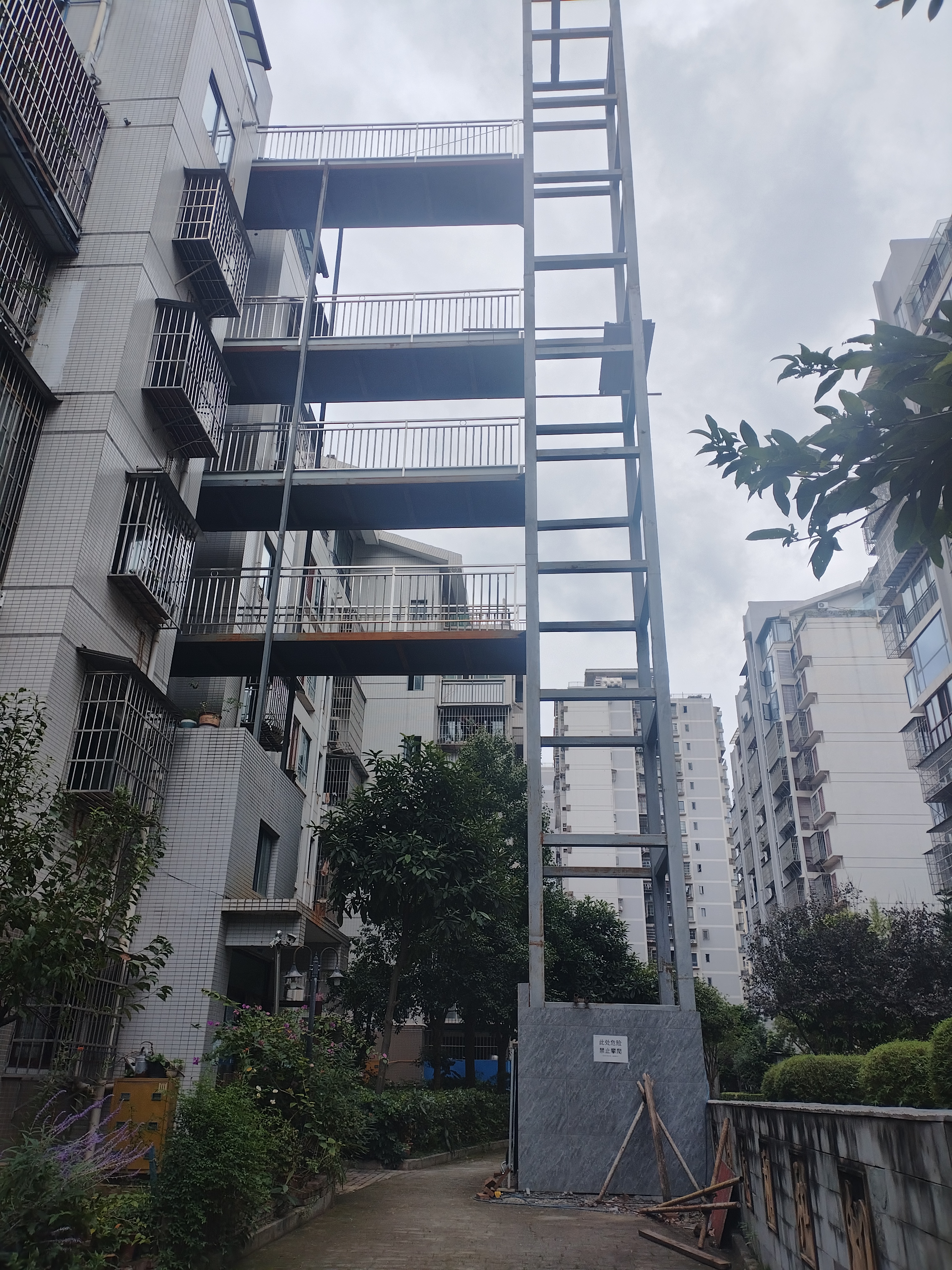 古蔺天成名都A区六栋一单元业主强行在小区通道中间加装电梯,至今电梯架都生锈了,看起很危险