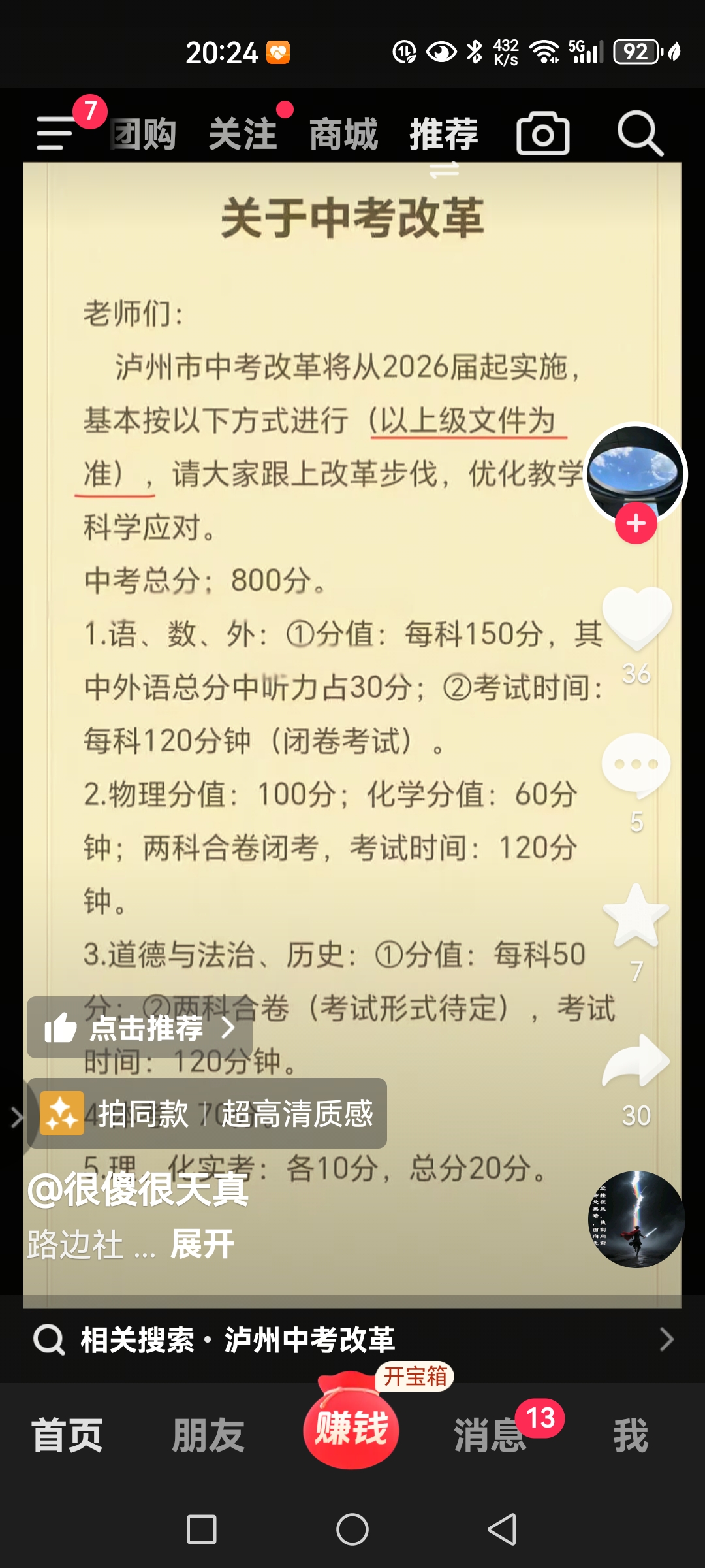 已经有人说泸州2026年中考改革了,中考分数提高到了800分?!