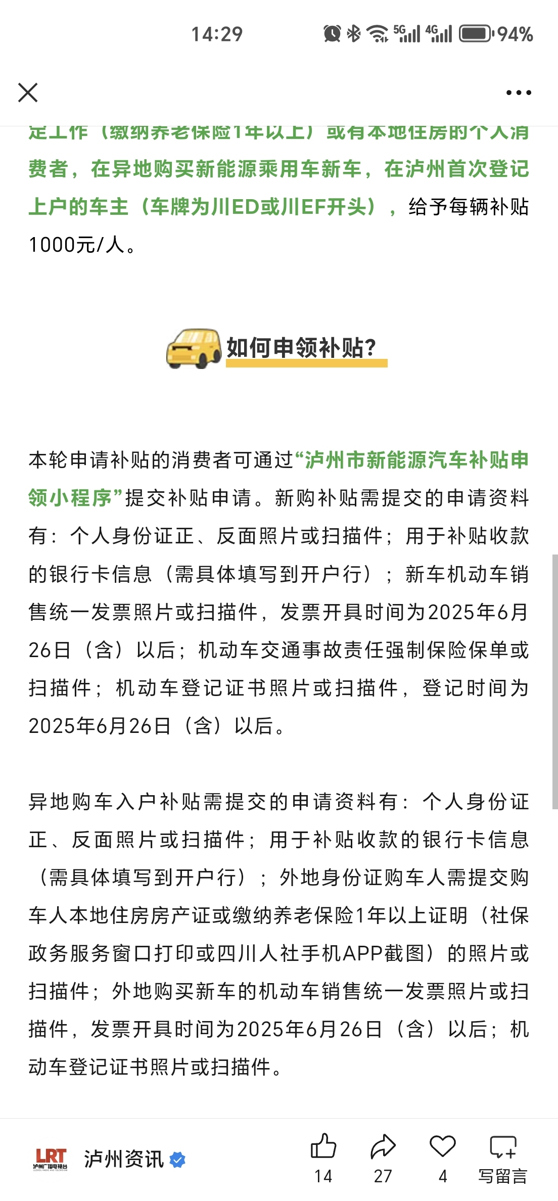 1、2025.10.20前已在小程序上填写了资料在待审核,现在是否还能领到新能源购车补贴?2、宣传说的申请渠道是泸州市新能源汽车补贴申请小程序,实际的小程序叫做新能惠补,是否有误导消费者?原本是第一时间想自己提交申请资料,但是搜不到这个小程序名字,销售也迟迟不帮忙申请,最后推迟了时间填了申请资料。