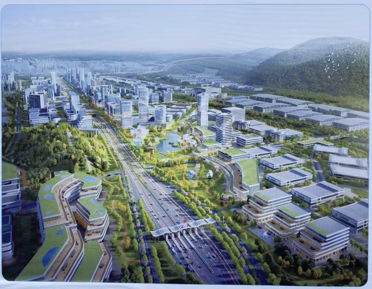 整体协调统一:注重建筑群体之间的风格协调与空间关系,开阔、现代、大气。