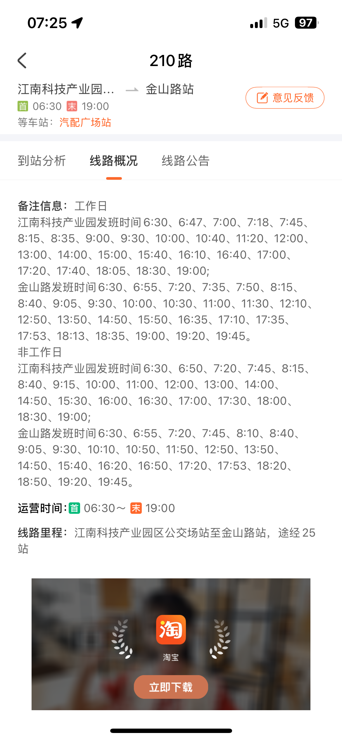 经与市民进行电话沟通,主要是需要从汽配广场前往长江小学上学出行,反映210路江南科技产业园区公交场站7:00发班班次太早,7:18班次太晚,建议210路调整班次。经了解,长江小学上课时间8:00,学校开校门时间7:40,210路从江南科技产业园区公交场站发往金山路7:00发班班次7:32-7:35之间到达“鲁湾”公交站点,现有班次能够满足大多数学生的出行需求。接下来,我司将持续密切关注该线路的客流出行情况,如客流发生变化将适时调整班次。