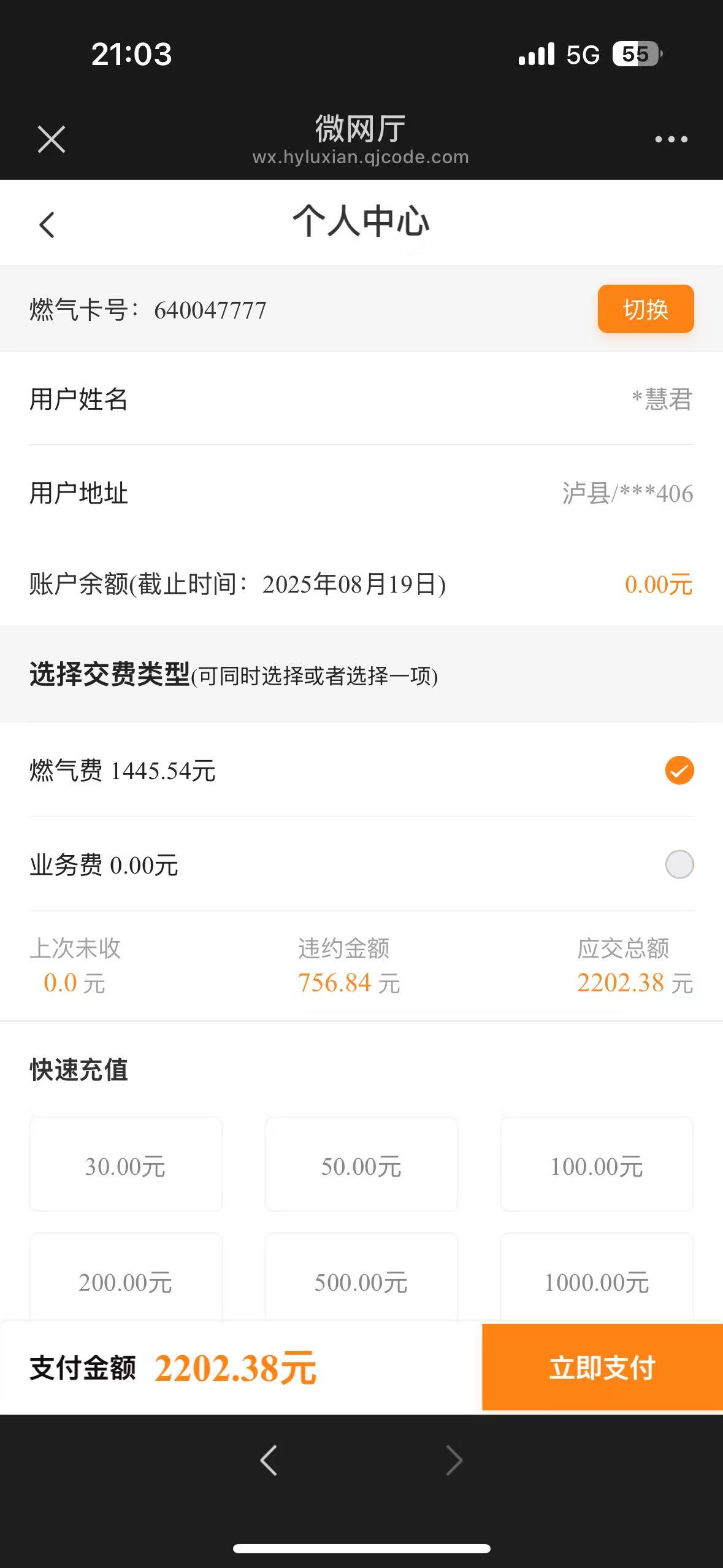 1. 停气与欠费情况发现:2025 年 10 月 16 日,本人家中突然出现停气情况;10 月 17 日,我前往泸县华油天然气有限公司咨询,被告知家中天然气存在欠费,欠费总金额为 2202.38 元,其中包含正常天然气费用 1445.54 元,以及违约金 756.84 元。