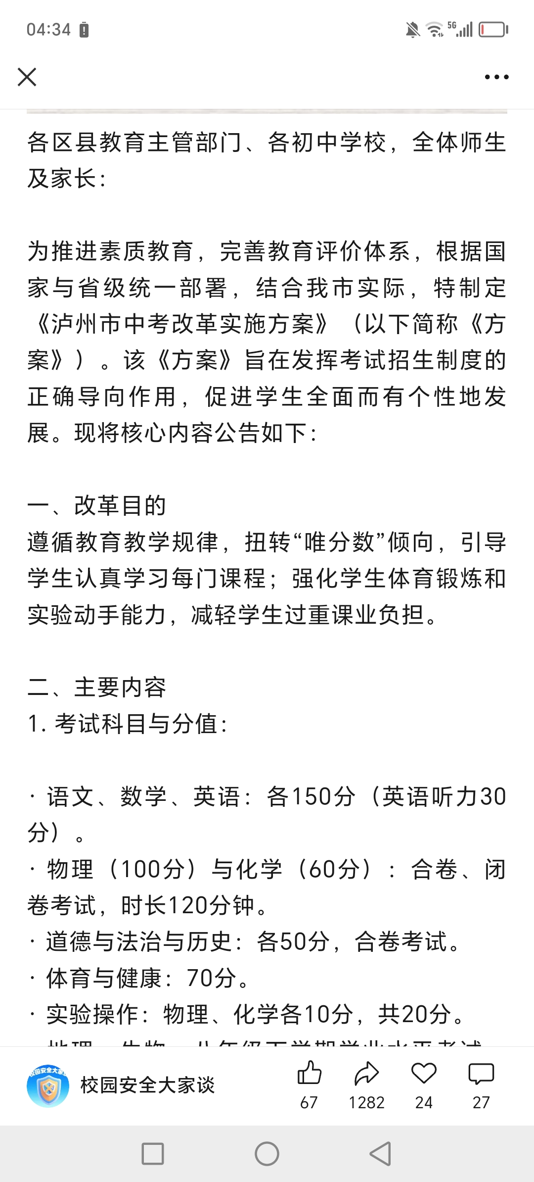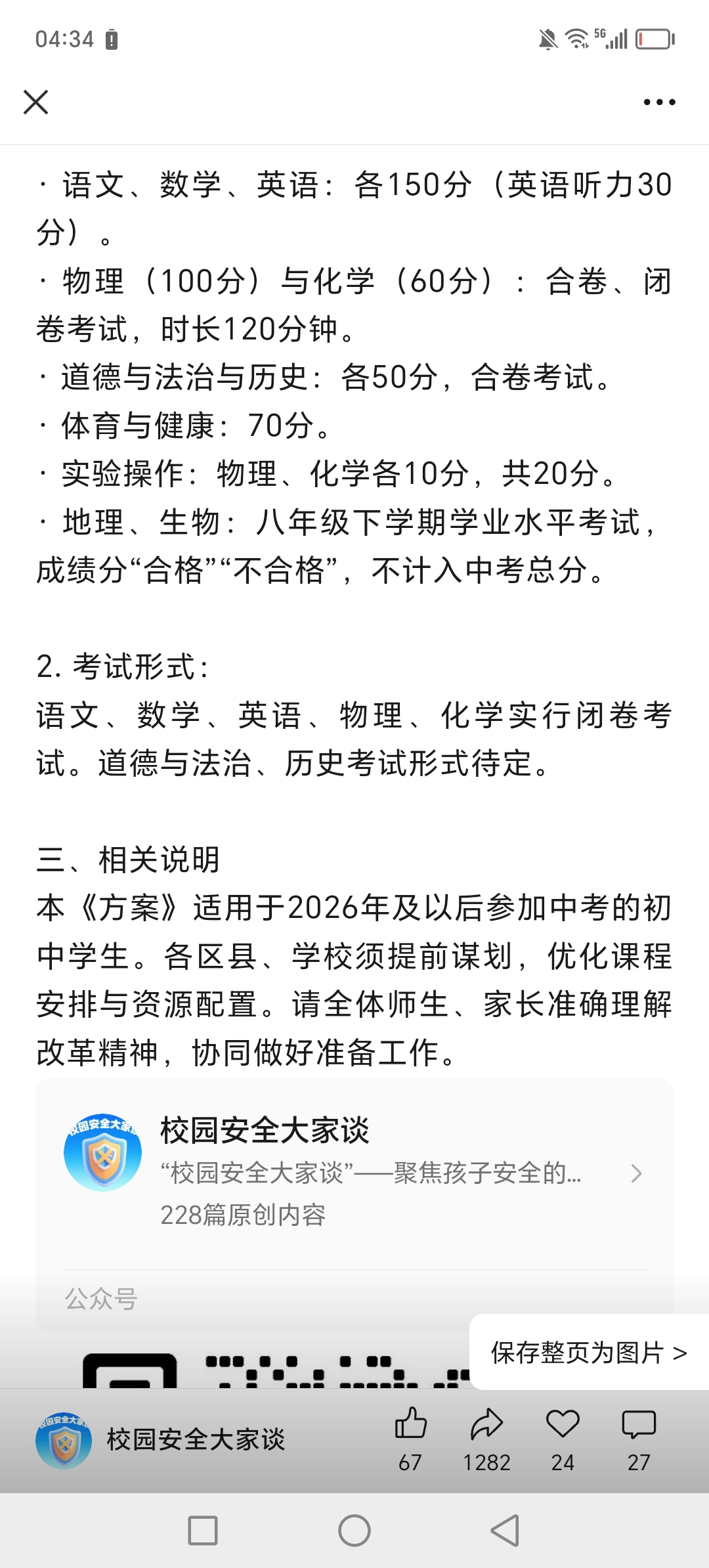 请问网传2026年中考改革改革针对初三学生是真还是假?