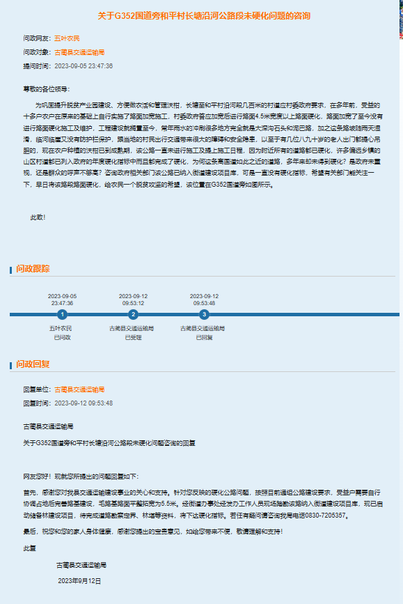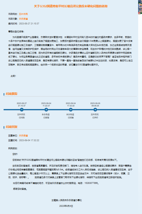 关于G352国道旁和平村长塘沿河公路段未硬化问题的咨询