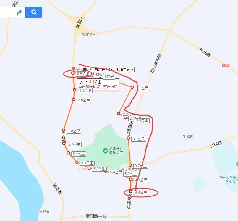 图片是个人拙见,测量距离结果显示优化线路与现行二环路行驶距离对比。结果显示本人建议方案比现方案距离多了400—500米,但是覆盖人群出行更加便利(小区、医院、学校)。
