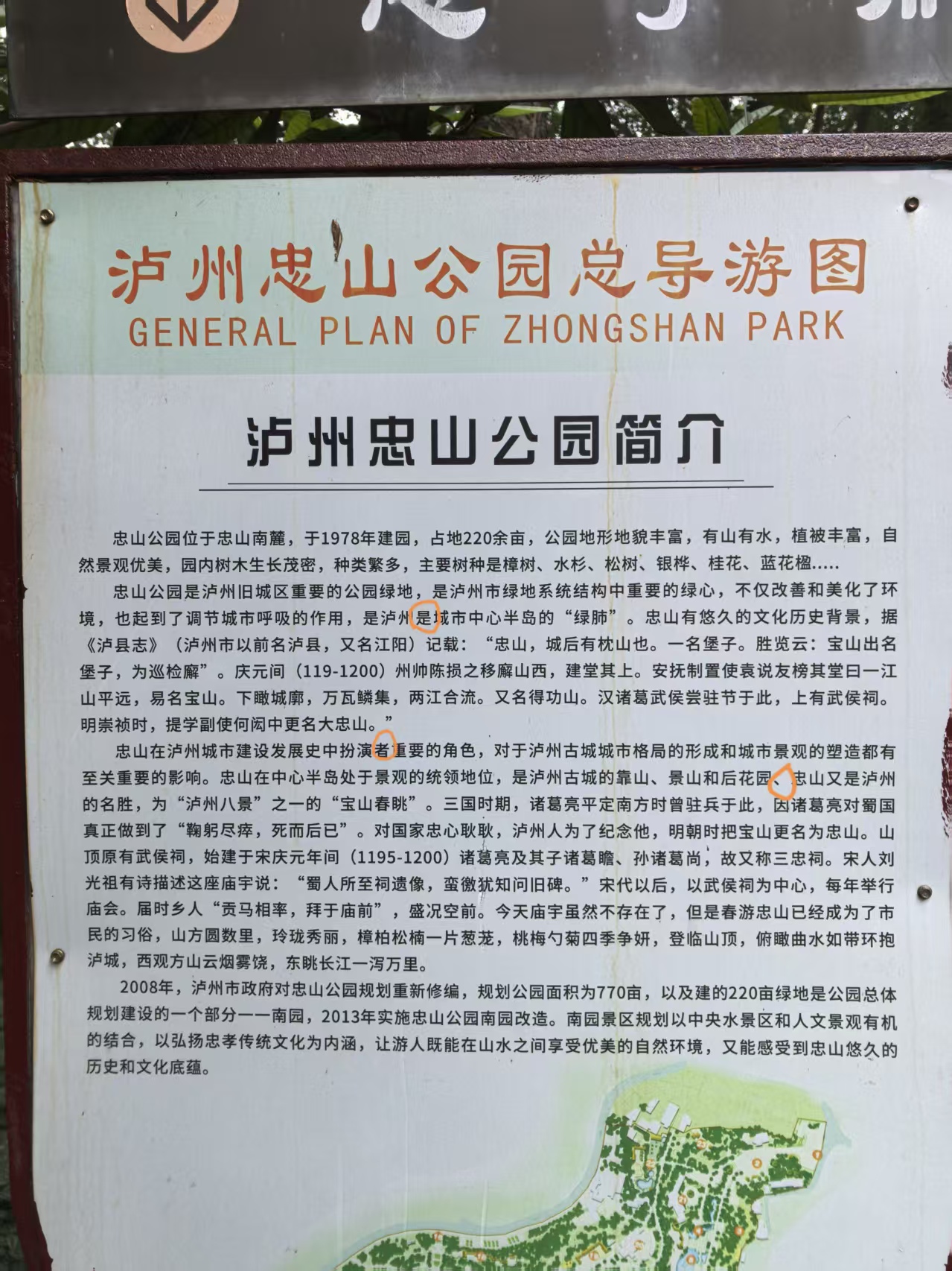 家里的小学生在忠山公园的简介里面对三处有疑问,想问是否有错误