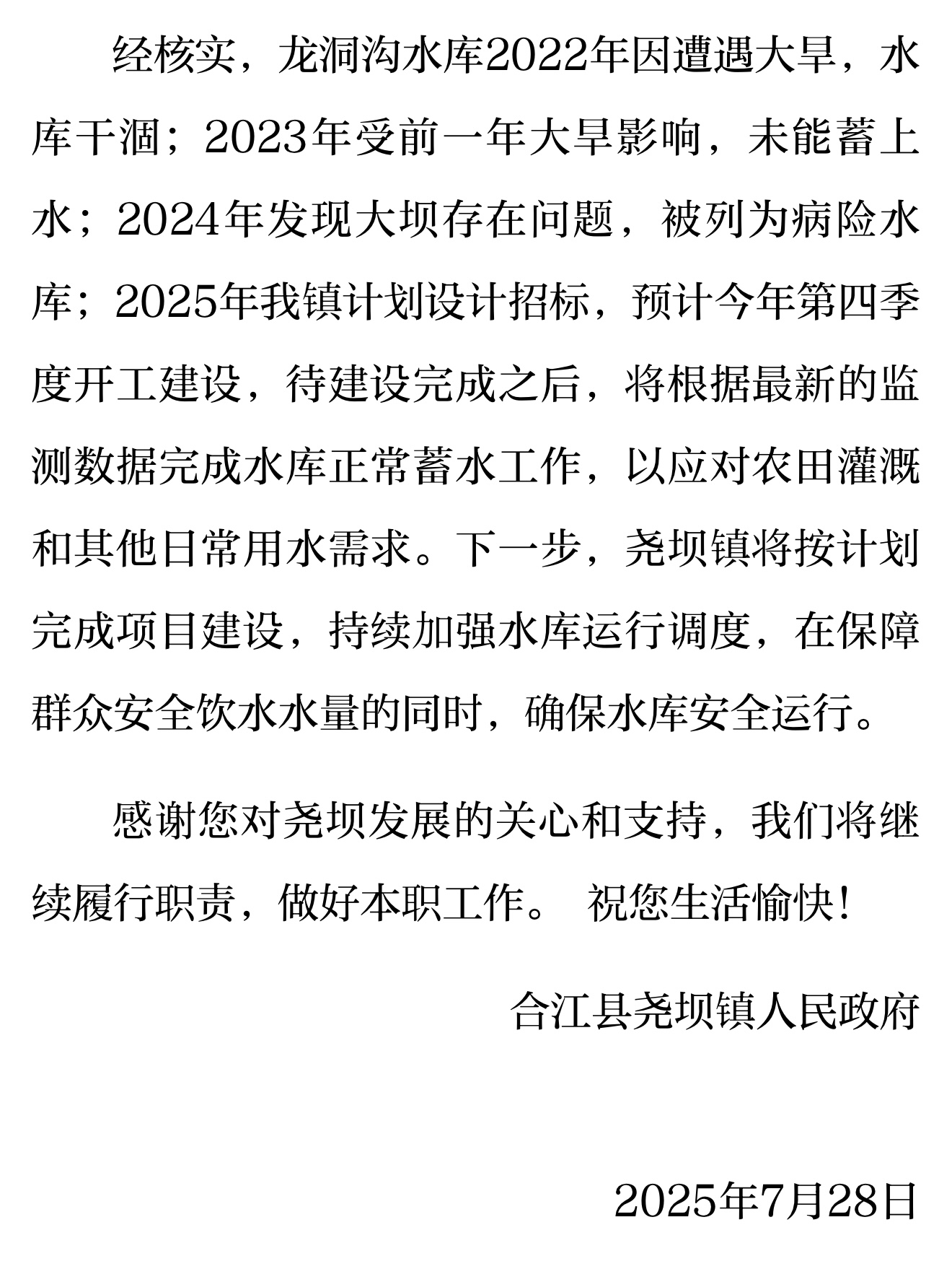 在今年第三季度七月份时候回复说第四季度开工建设,现如今第四季度已过去两个月 此工程项目毫无音讯!这个水库就此烂尾废弃掉吗?