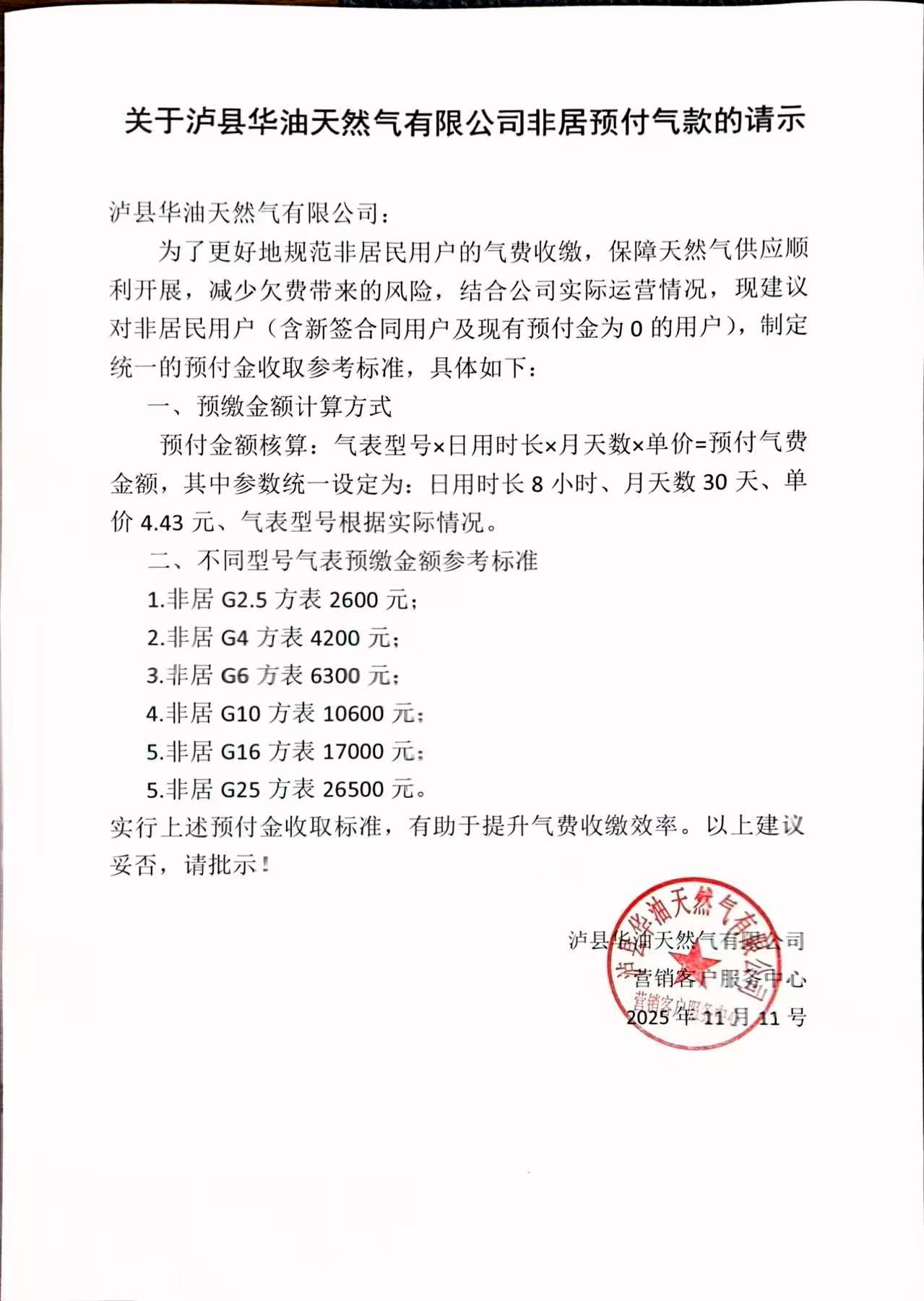 关于您提出“泸县华油天然气公司要求经营者需交押金”的相关疑问,我局第一时间联系泸县华油天然气有限公司相关负责人,经调查了解,您户属于该公司商业用户,目前使用的是天然气远传表具。该表具具备欠费自动关阀功能,为了规范用气缴费秩序,保障供用气双方的合法权益,当表内预存气费余额不足或欠费时,表具会自动关闭阀门暂停供气,以避免恶意欠费及资源浪费。该公司从未要求任何用户缴纳“押金”,您所了解的“交押金”一说与实际情况不符。为避免用户因日常事务繁忙忘记充费,导致欠费关阀后突然断气,影响正常经营活动,该公司仅为用户提供预存气费的建议,用户可根据自身每日天然气使用量,提前预存一定金额的气费,确保表内余额充足,从而保障用气的连续性与稳定性。
