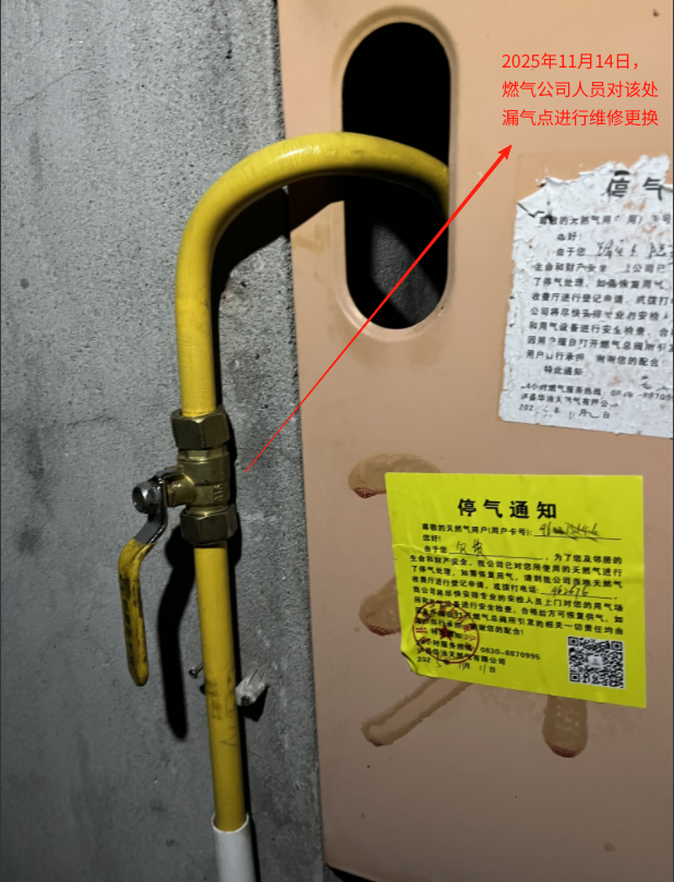 这里本人不禁想问下泸县华油燃气公司,你们的燃气管存在泄露情况下把责任和损失全部归咎到用户头上合理合规吗?还找诸多主观理由说是用户原因导致,你们气表那个地方的阀门开关等除了你们工作人员去拨弄,安装位置日常都无人涉足,管道器件坏了导致气体泄露也是用户的责任和问题?你们前后2次上门检查,为什么11月7日检查结论是没有泄露,11月14日检查又发现存在气体泄露?检查的标准是否做到了统一?且维修只顾着向用户索取收费却不出具任何纸质收据的?燃气管道存在泄露,日常安全维护是否按规定和要求定期做到了?维护不到位导致的燃气泄露给用户带来的安全风险谁来保障?