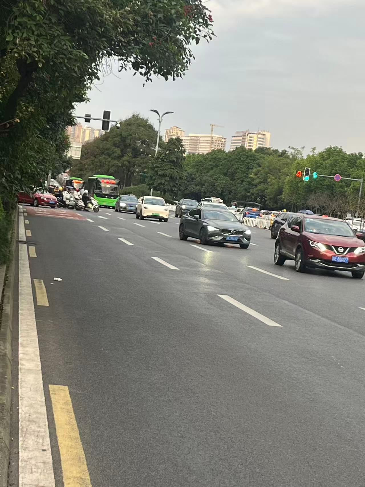 这个位置人流、车流相当大,忠山、泸高两个学校分立两边,学生、接送人员特别多,过路保障却只有红路灯。且刚好有转弯路口、公交大站点在此汇合(如图),路况更加复杂,不安全因素多。