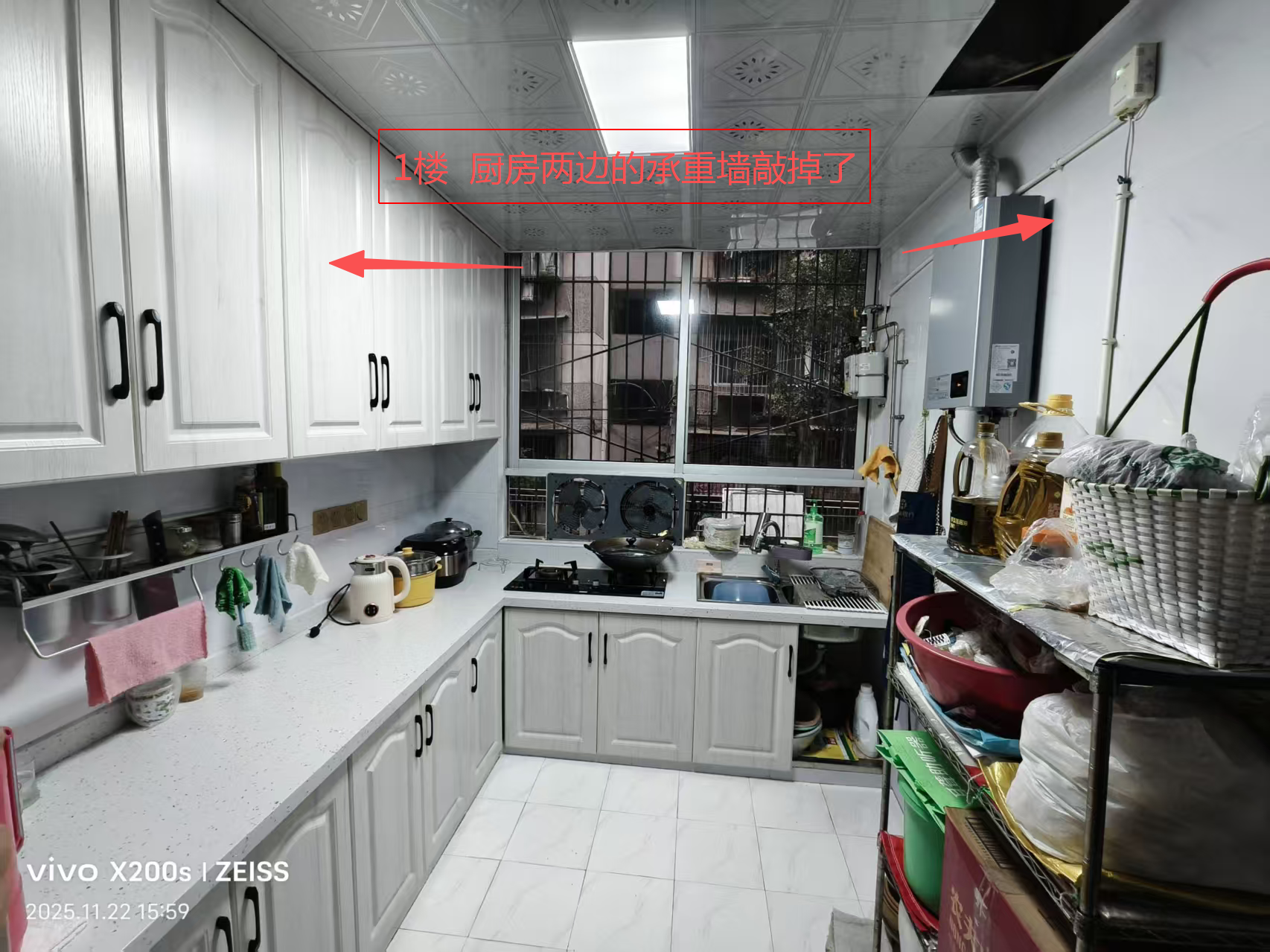 因1楼住户101厨房顶漏水找到我(201),我找装修人员去检查时发现1楼装修时把承重墙敲掉了,然后联系了楼上住户检查自家厨房时发现相同位置出现开裂情况,这是否存在安全隐患,如存在应该怎么处理,这种情况哪个部门协调管理。我报了110,社区都说不归他们管。