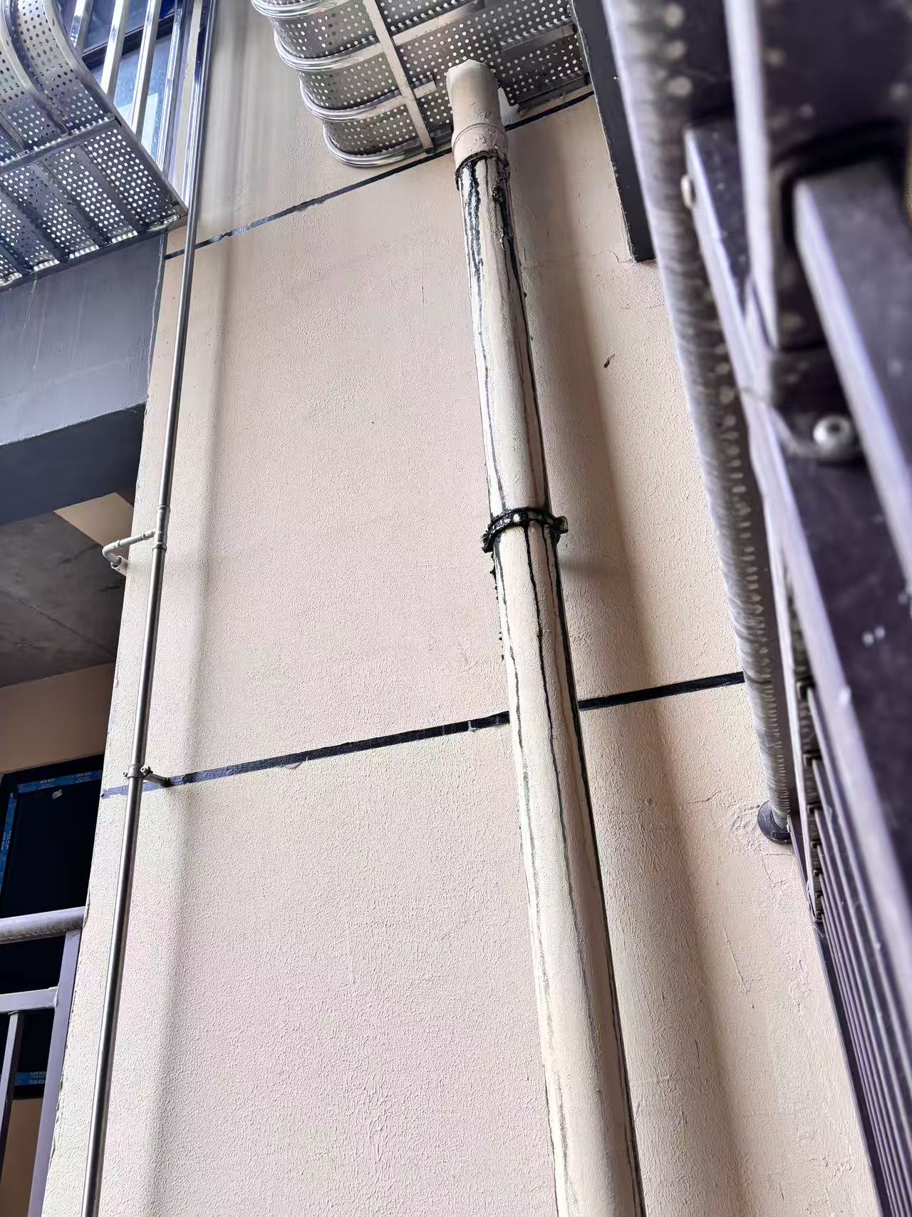 康城路翡翠滨江10号楼2902外墙排水管漏水,清水房接房后一直未装修,最近正在装修,发现外墙排水管漏水,11.17第一次和物业反映,物业带维修师傅来看了说是要请高空作业的人来换管道,11.25日物业说公司暂时找不到师傅来维修更换,公司还在走流程,请问如果公司一直不走流程,我的问题是不是就没办法解决,影响我正常装修?这种情况我应该找哪个部门解决?开发商卖了房就不管了吗?